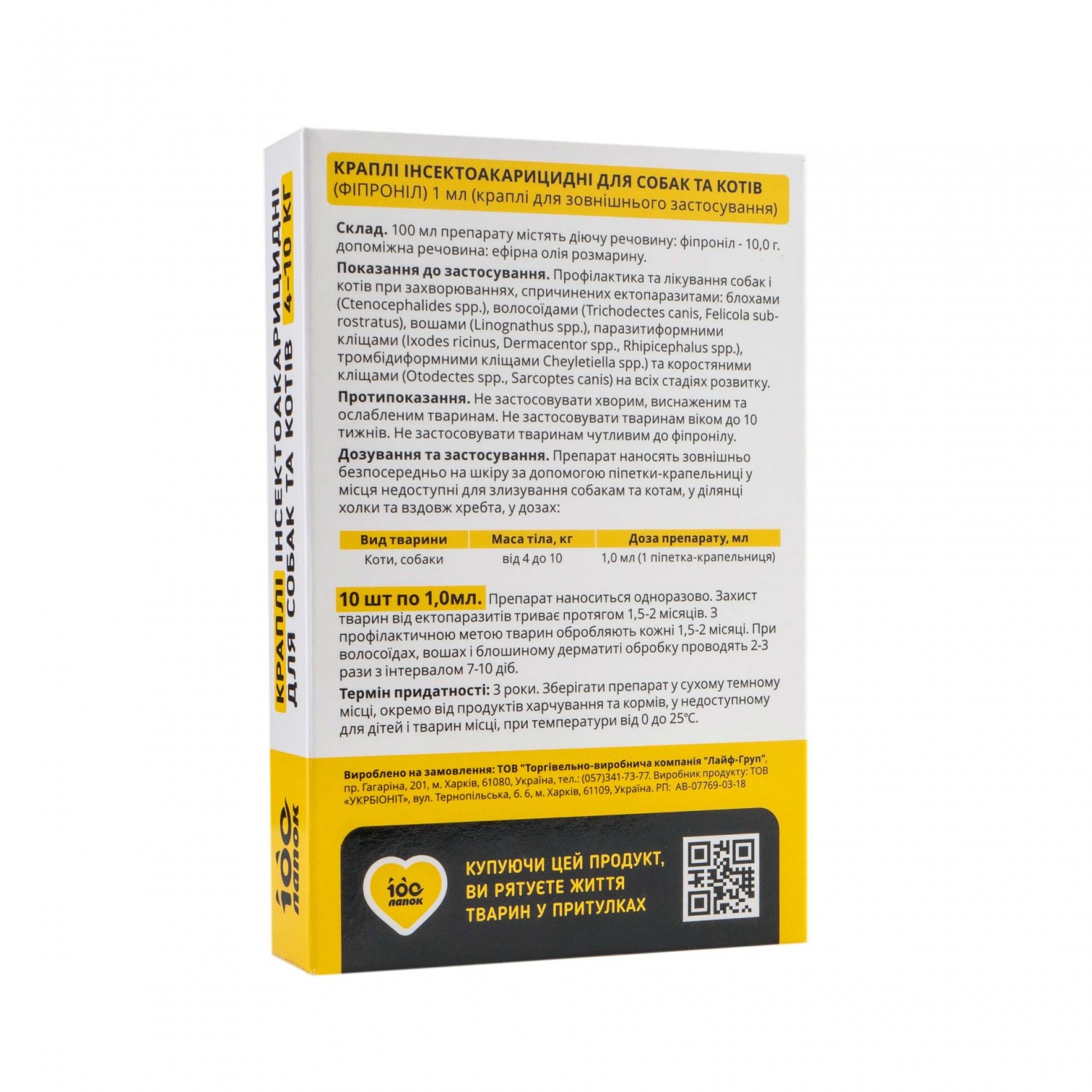 Зовнішні краплі100 Лапок ефективно захищають тварин від зараження: