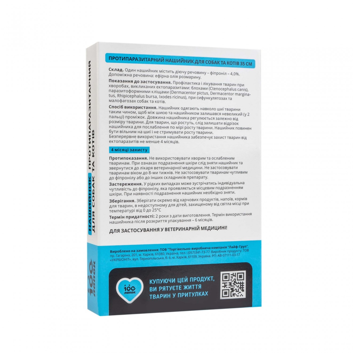 "100 лапок" нашийник протипаразитарний для котів та собак 35 см/10шт.уп.