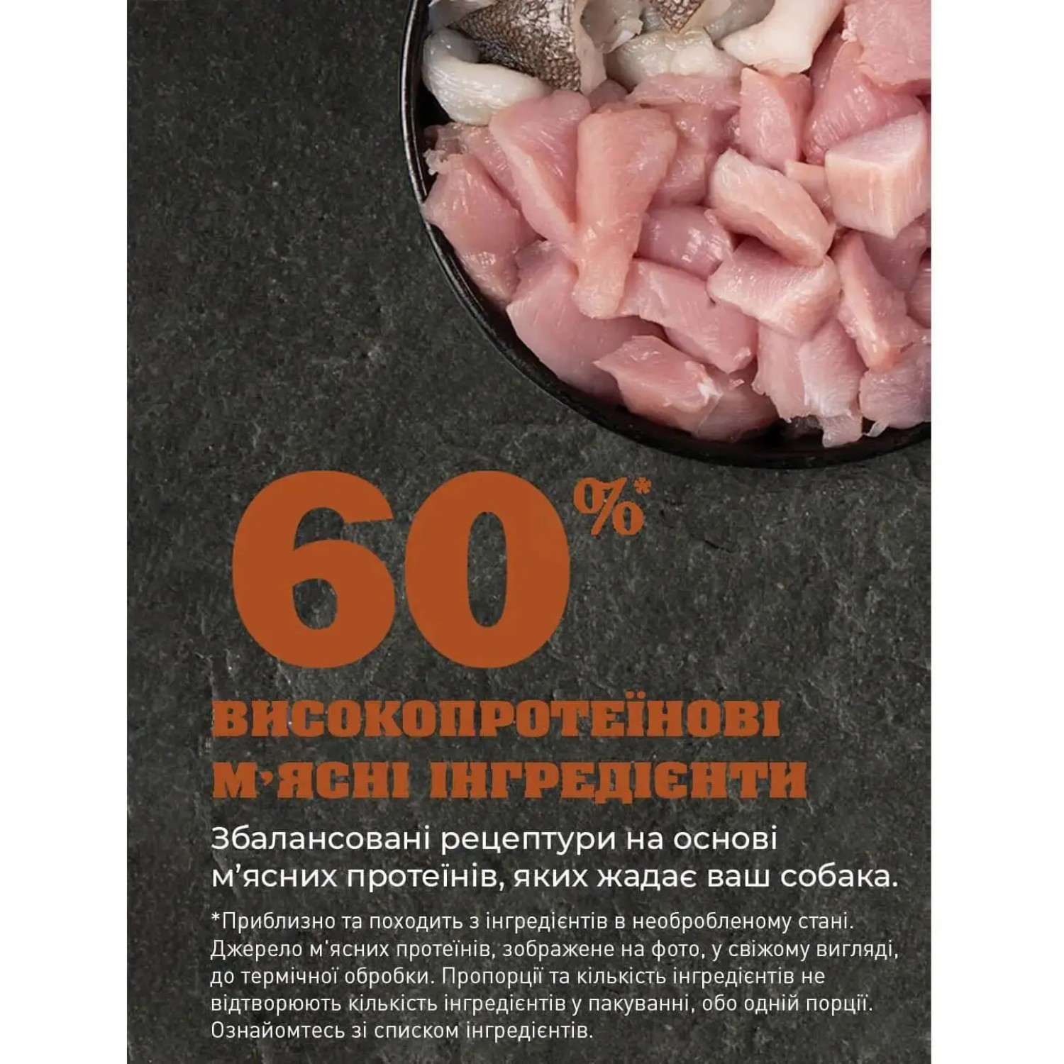 - Містить свіжу регіональну рибу, виловлену на волі - чудове джерело не перероблених жирних кислот Омега-3 (ДГК і ЕПК), що важливо для натурального раціону всіх собак.