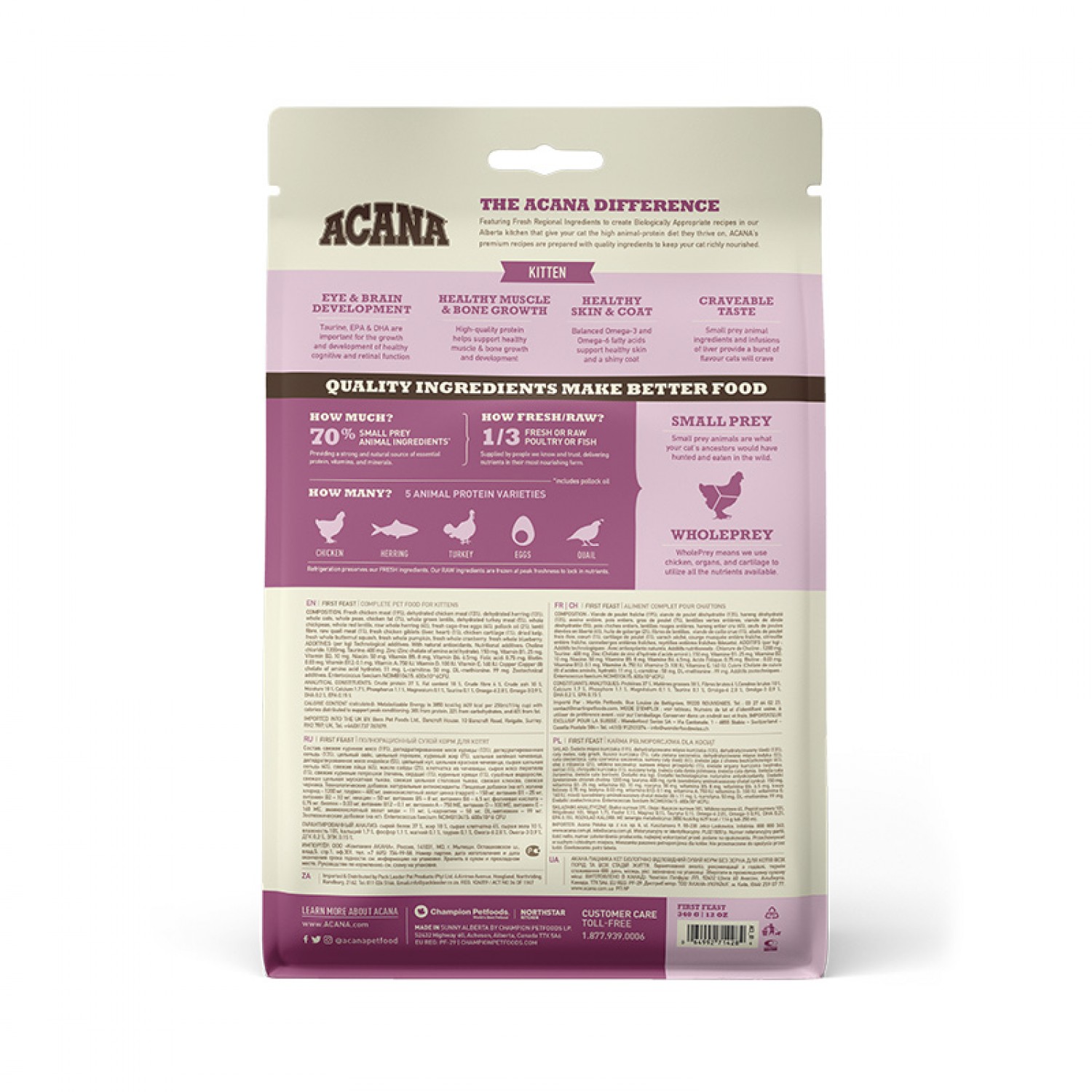 Acana First Feast Kitten сухий корм для кошенят з куркою, індичкою та оселедцем.