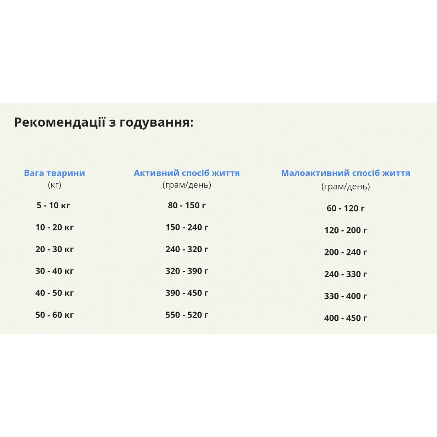 Цей раціон забезпечує вашого собаку протеїнами та необхідними нутрієнтами для підтримки здорової ваги тіла.