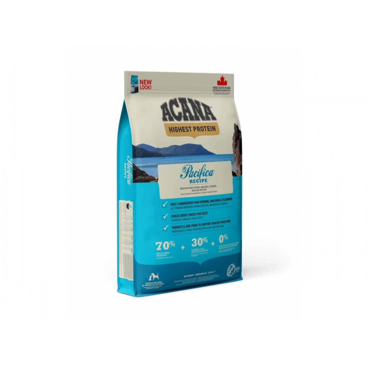 Раціон ACANA Pacifica  створений у відповідності до рівнів поживності встановлених FEDIAF для собак всіх стадій життя, включаючи період зростання цуценят великих порід.