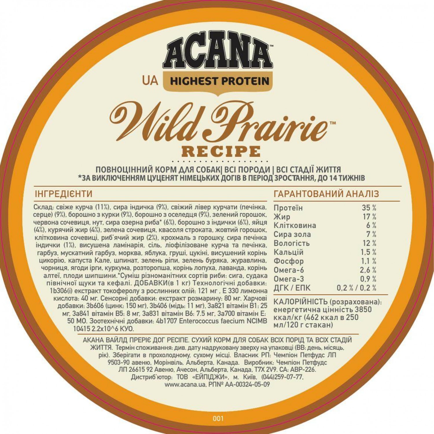 Acana Wild Prairie Dog Recipe сухий корм для собак з куркою та індичкою.