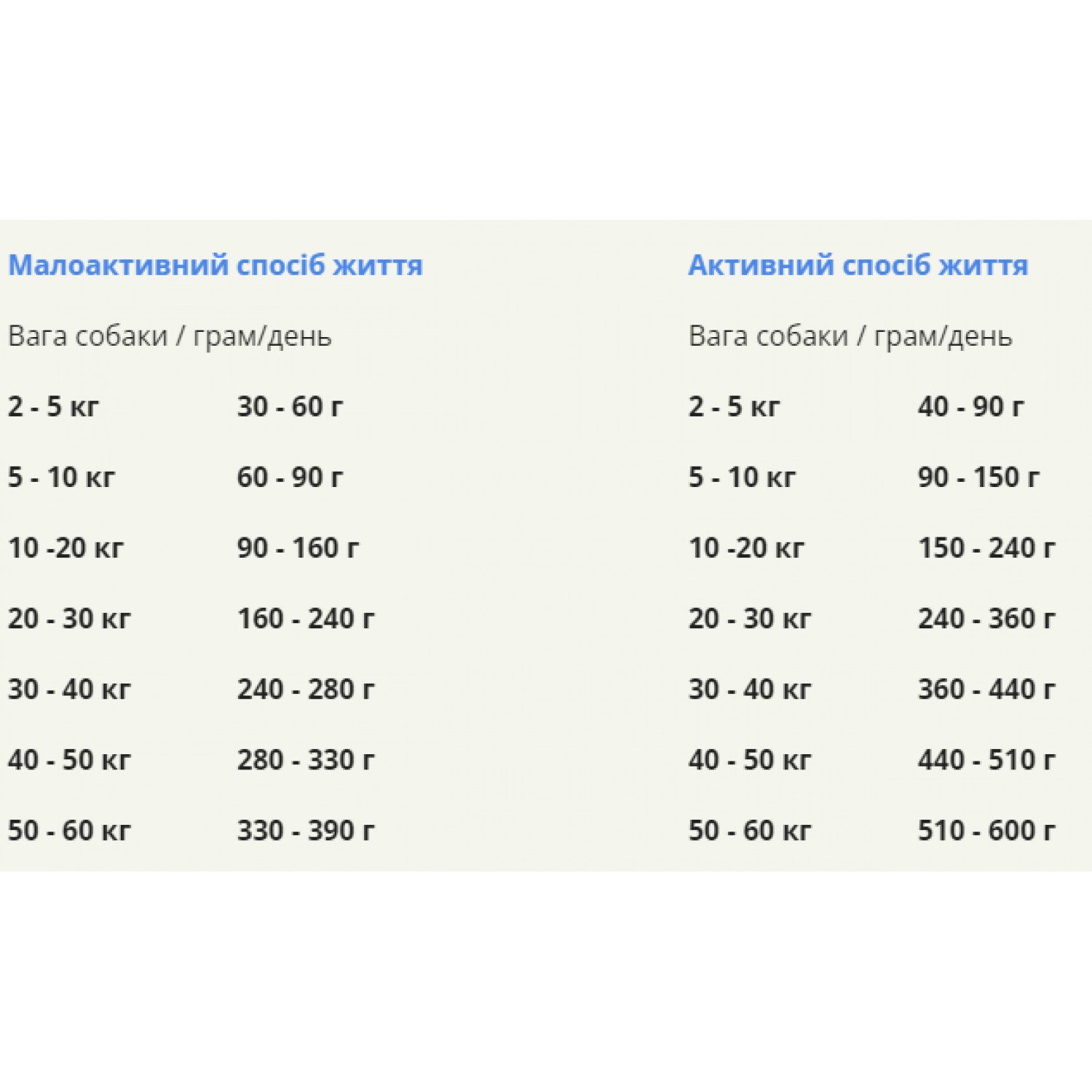 • Давати щодня з урахуванням ваги та фізичного навантаження улюбленця. Дотримуйтеся норм годування, зазначених в таблиці на пакованні, але враховуйте індивідуальні потреби Вашого собаки.