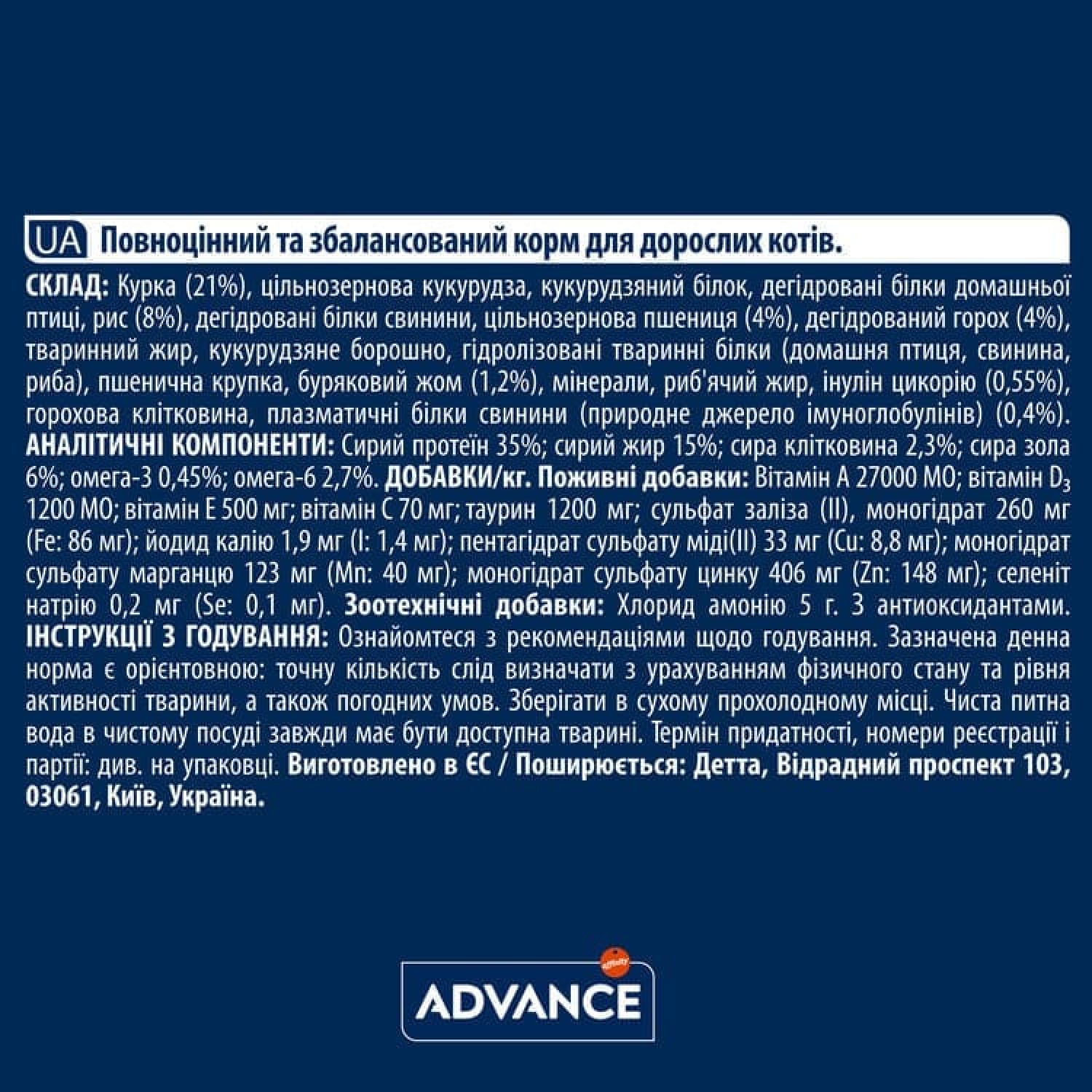 Сухий корм Advance Cat Chicken & Rice - це високоякісний, повнораціонний корм, розроблений для дорослих котів від 1 до 10 років. Цей корм містить усі необхідні речовини для підтримки відмінної фізичної форми та активного життя вашого улюбленця,а також враховує всі основні аспекти, від травлення до підтримки імунної системи, гарантуючи вашому коту все необхідне для активного та здорового життя.
