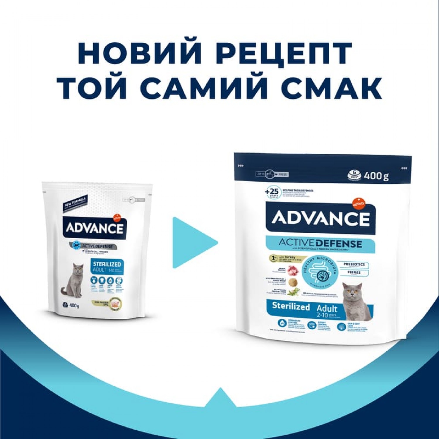 Advance Cat Sterilized сухий корм для стерилізованих котів з індичкою.