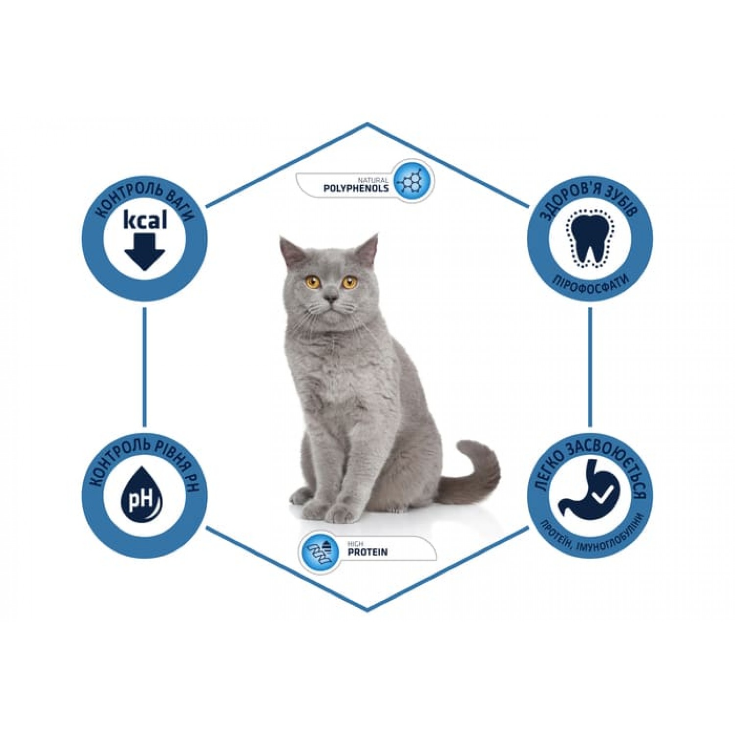 • Дієтичне м'ясо індички полегшує травлення, а знижена калорійність корму допомагає підтримувати оптимальну вагу кота.