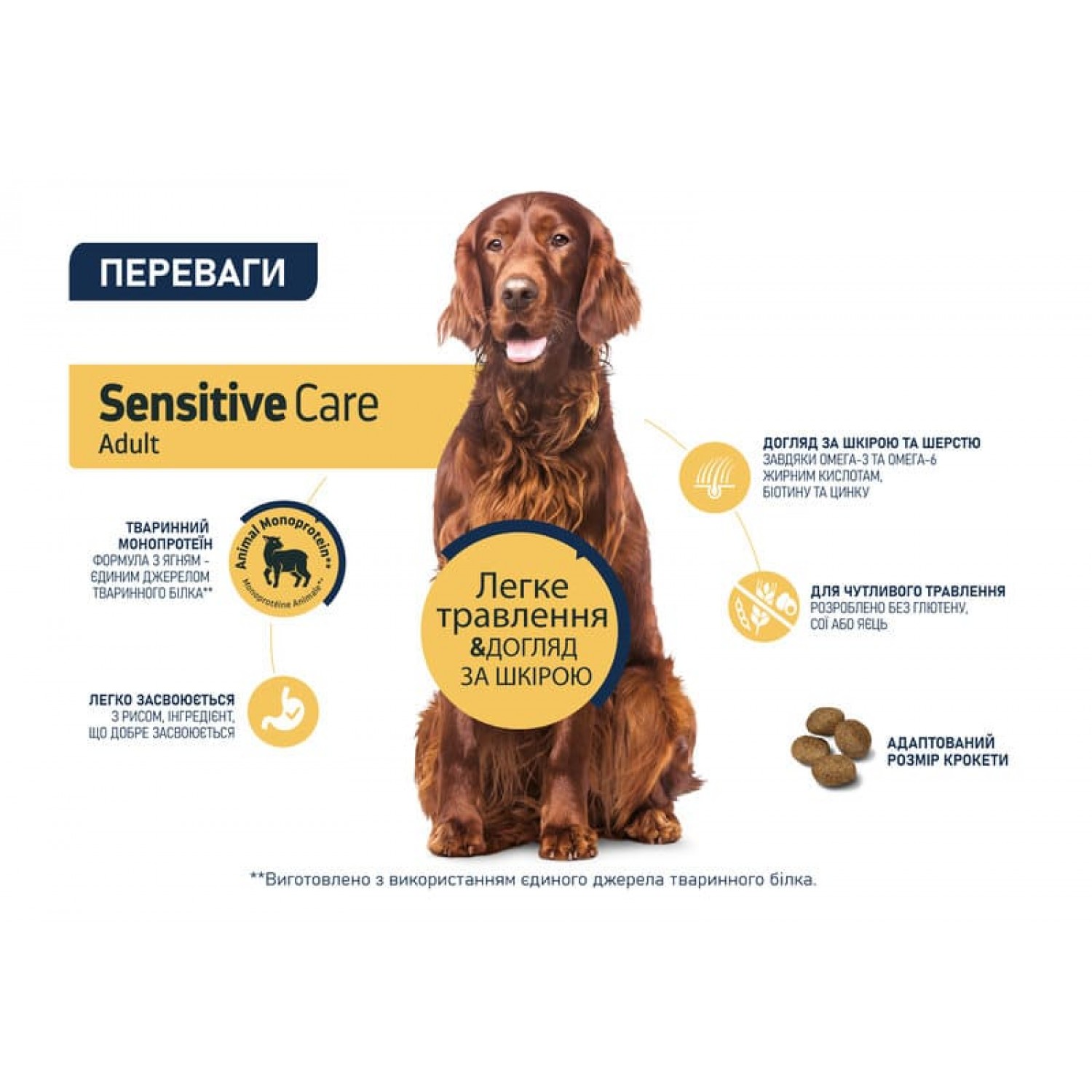 Корм ідеально підходить для собак гігантських, великих та середніх порід.