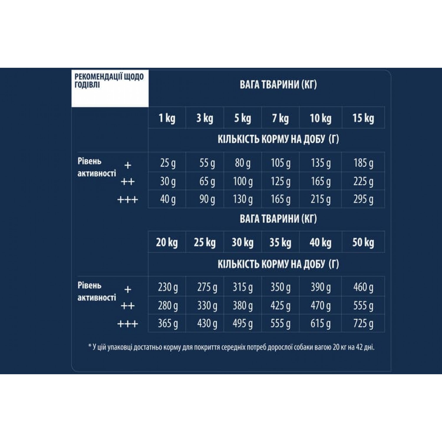 • Добова норма може змінюватися залежно від рівня активності, погодних умов, а також у зв'язку з індивідуальними особливостями собаки.