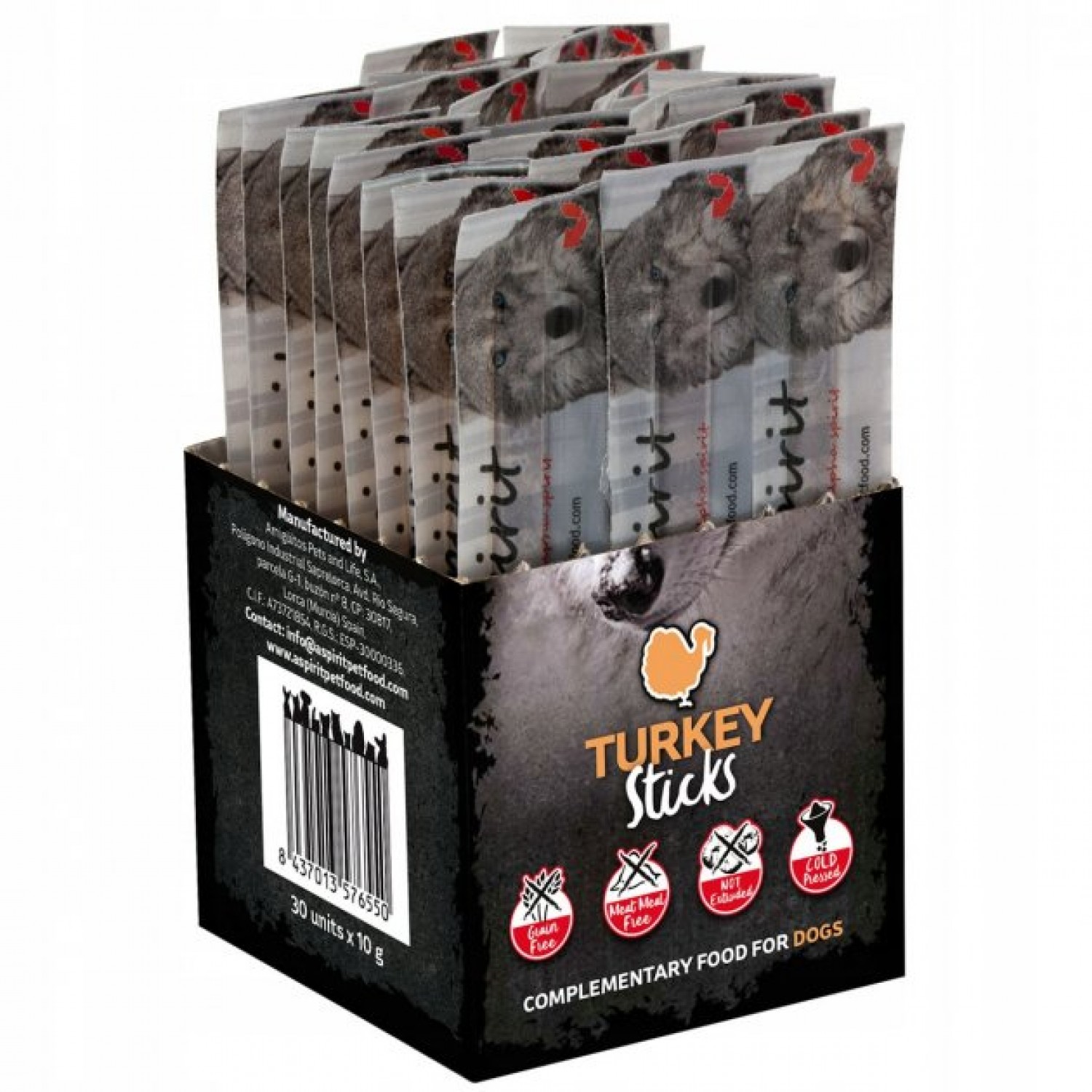 Alpha Spirit Sticks - гіпоалергенні беззернові напіввологі ласощі для собак у вигляді жувальних паличок. Ласощі Alpha Spirit виготовлено виключно зі свіжого м'яса та риби. Для приготування 1 кг напіввологих ласощів Alpha Spirit Turkey використано 1,68 кг свіжого м'яса та 0,42 кг свіжої риби. Свіжі інгредієнти готуються при низькій температурі, зберігаючи поживні речовини, вітаміни та мінерали. Продукція виготовляється без додавання м'ясного борошна чи жирів, а також не містить зерна та глютену.