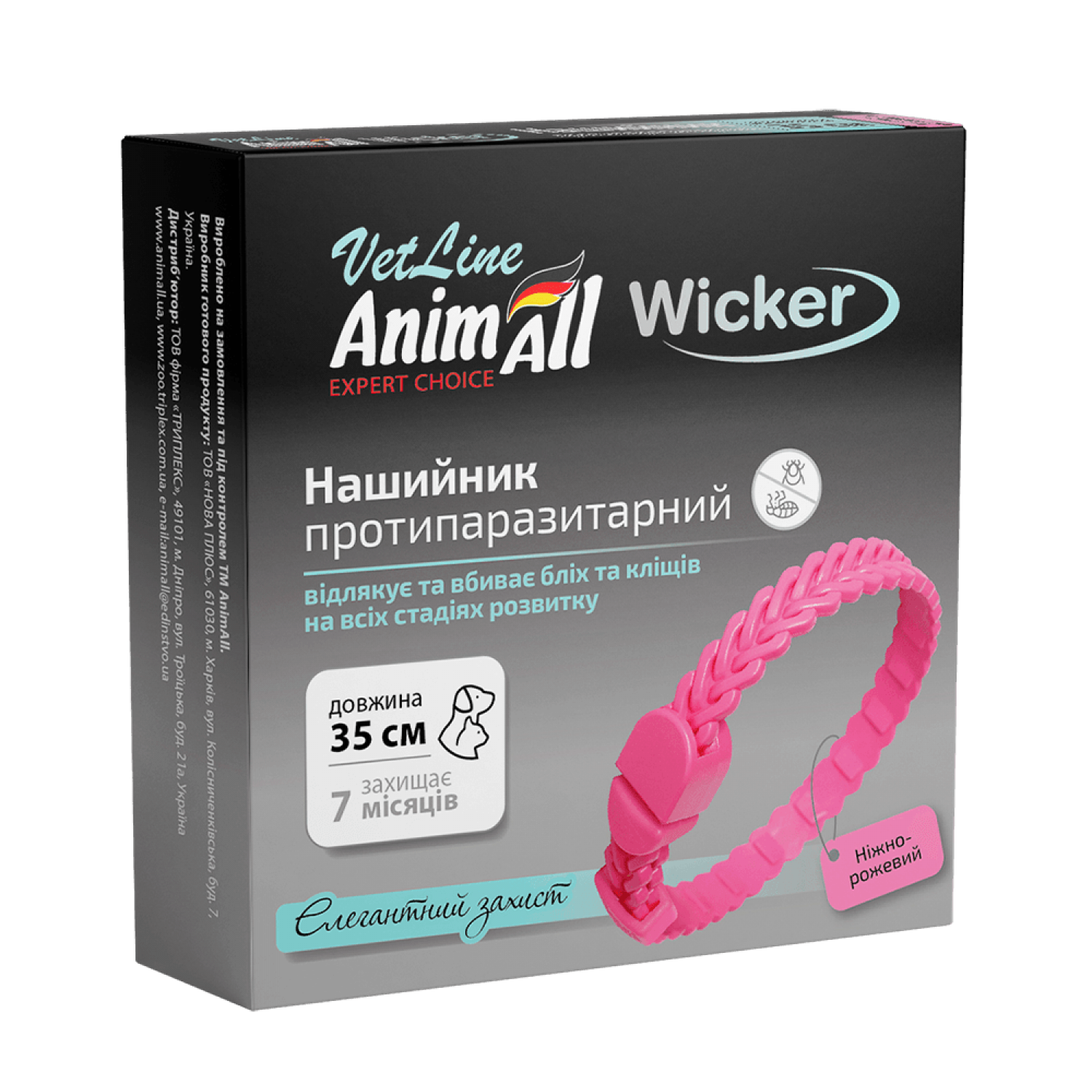 AnimAll VetLine Wicker нашийник протипаразитарний для котів та собак малих порід, ніжно-рожевий.