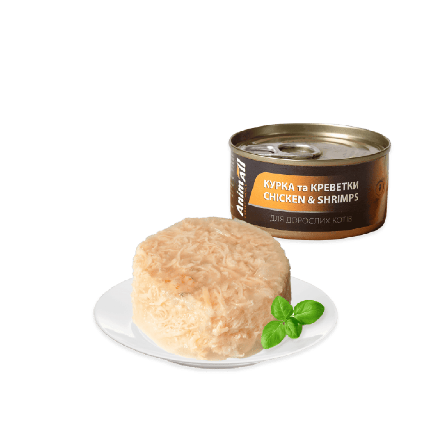 AnimAll вологий корм для котів з куркою та креветками в ніжному желе.