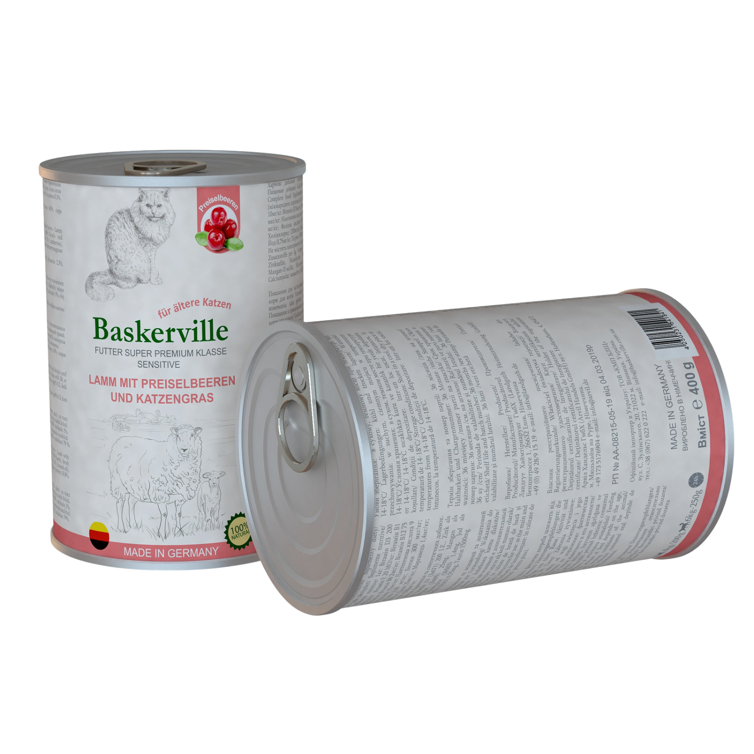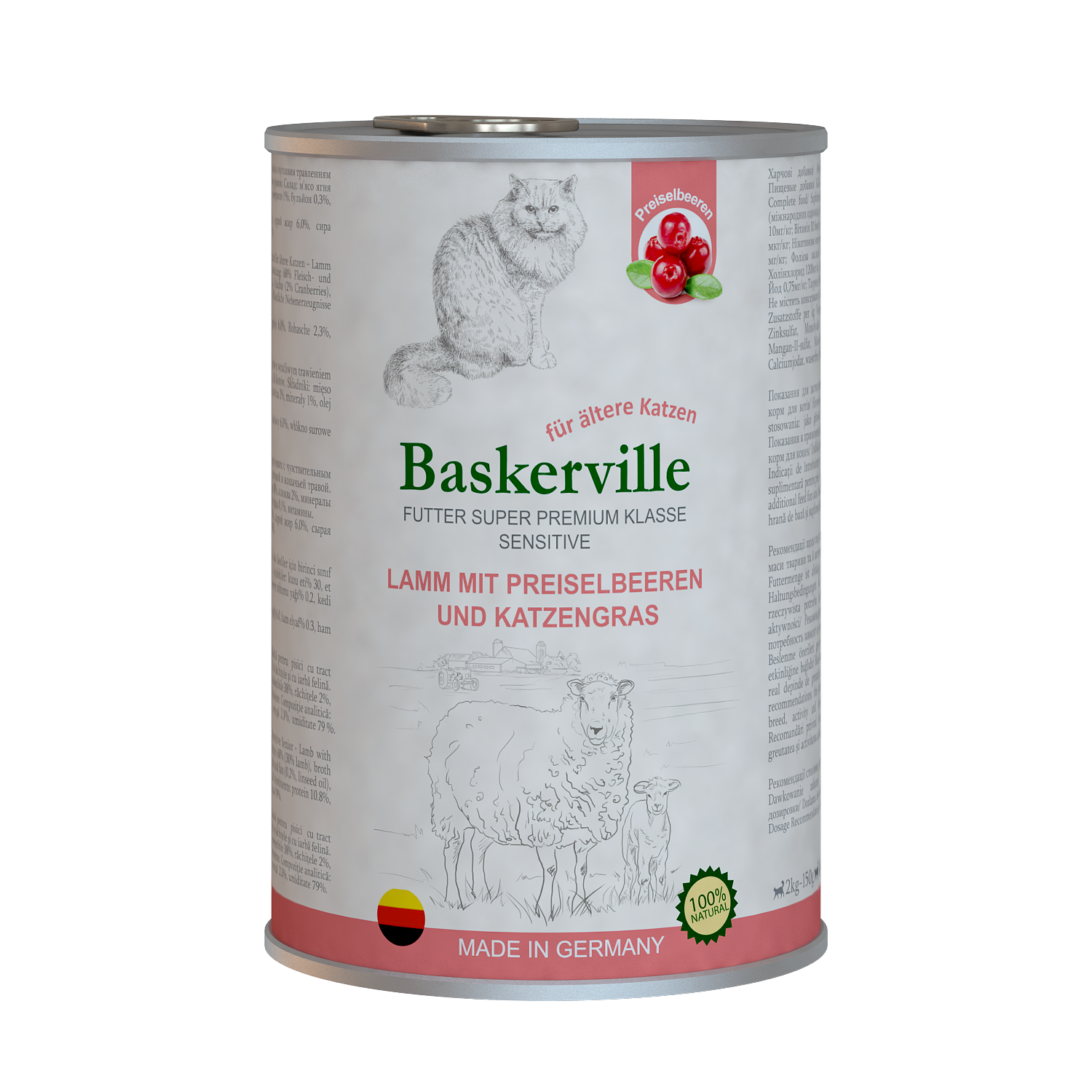 Консервований корм для кішок Baskerville Sensitive Ягня з журавлиною та котячою травою