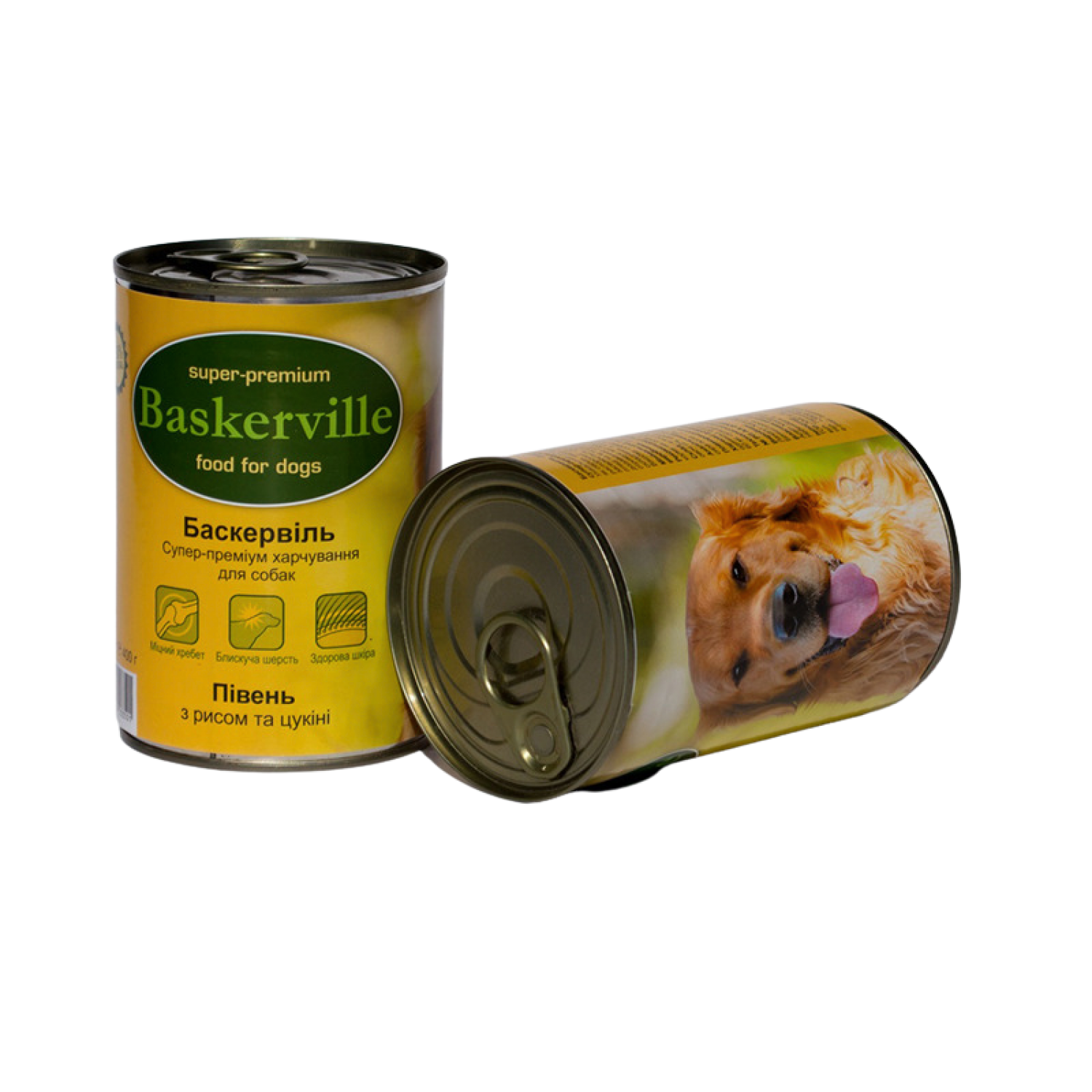 Баскервіль. Півень з рисом та цукіні. Консервований корм супер-преміум класу для собак.