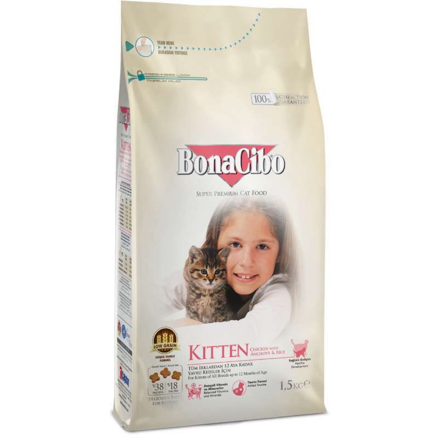 Сухий корм супер преміум класу з м'ясом курки, анчоусами та рисом для котенят всіх порід до 12-ти місяців. BonaCibo Kitten містить оптимальний баланс протеїнів, жирів та вуглеводів, необхідних для здорового розвитку. Раціон збагачений омега-3 жирними кислотами, есенціальними вітамінами та мінералами, які сприяють здоровому метаболізму та забезпечують правильний розвиток кісток.
