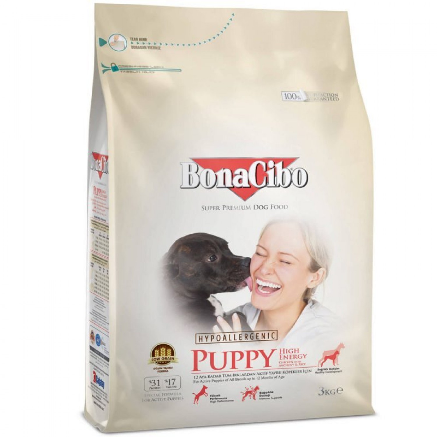Сухий корм супер преміум класу з м'ясом курки, анчоусами та рисом для активних цуценят всіх порід до 12 місяців. Формула BonaCibo Puppy High Energy забезпечує активних цуценят у додатковій енергії та підтримує здоровий розвиток. Баланс протеїнів, жирів та вуглеводів забезпечує здорове зростання, покращує метаболізм та сприяє правильному розвитку кісток.