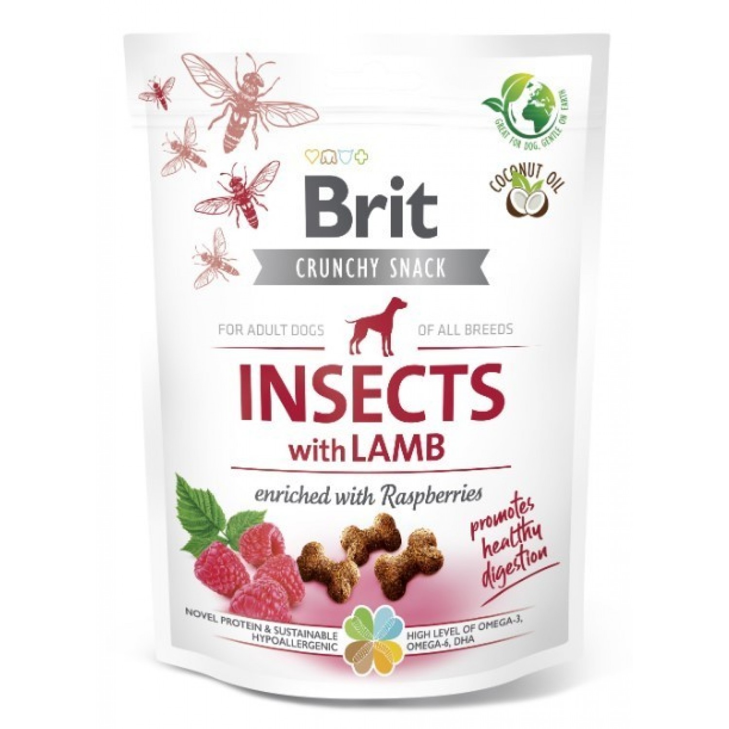 Brit Care Dog Crunchy Cracker Insects ласощі для травлення собак з комахами, ягням та малиною.
