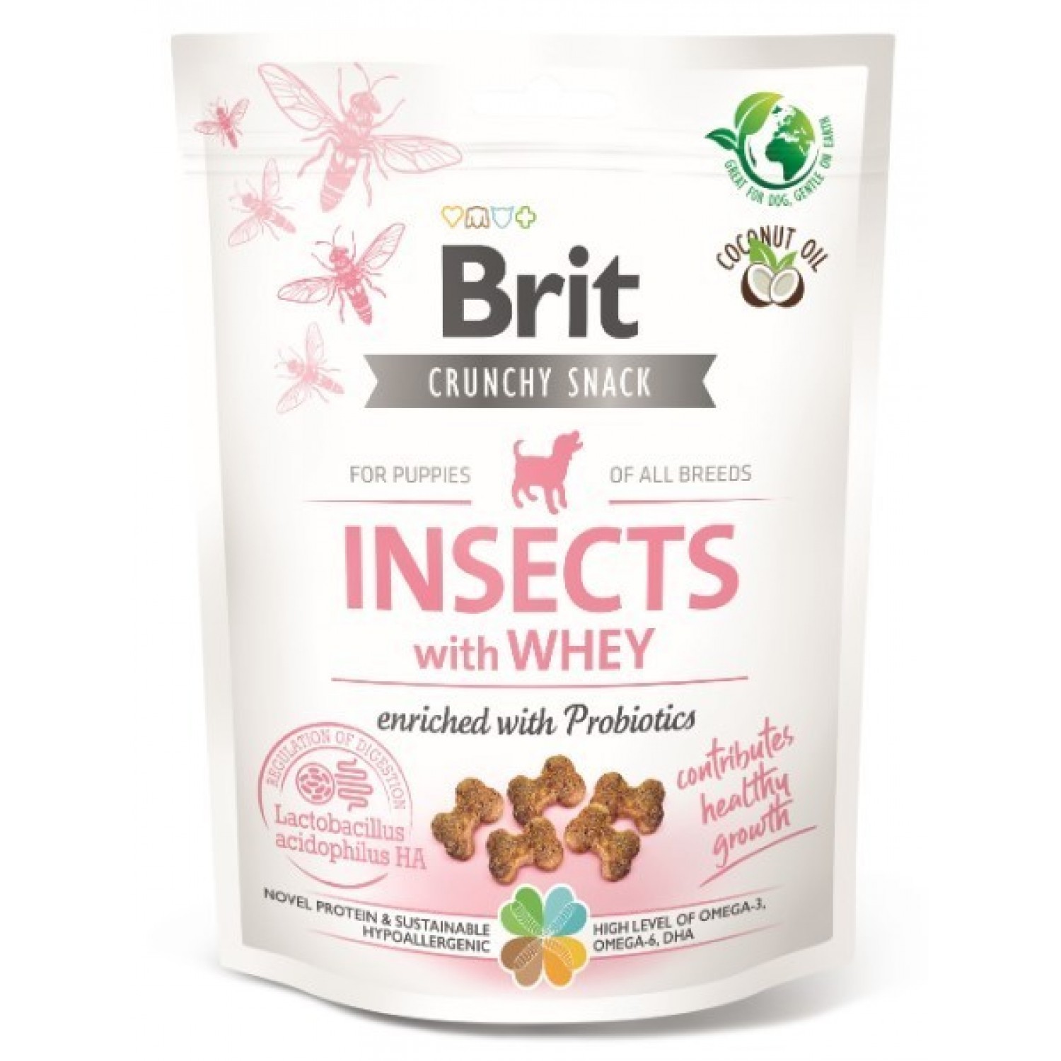 Ласощі для цуценят Brit Care Dog Crunchy Cracker Insects - функціональний додатковий корм з білком комах, сироваткою та пробіотиками. Хрусткі та апетитні кісточки смакуватимуть вашому улюбленцю та сприятимуть його зростанню. Це смачна та корисна винагорода для вашого улюбленця!
