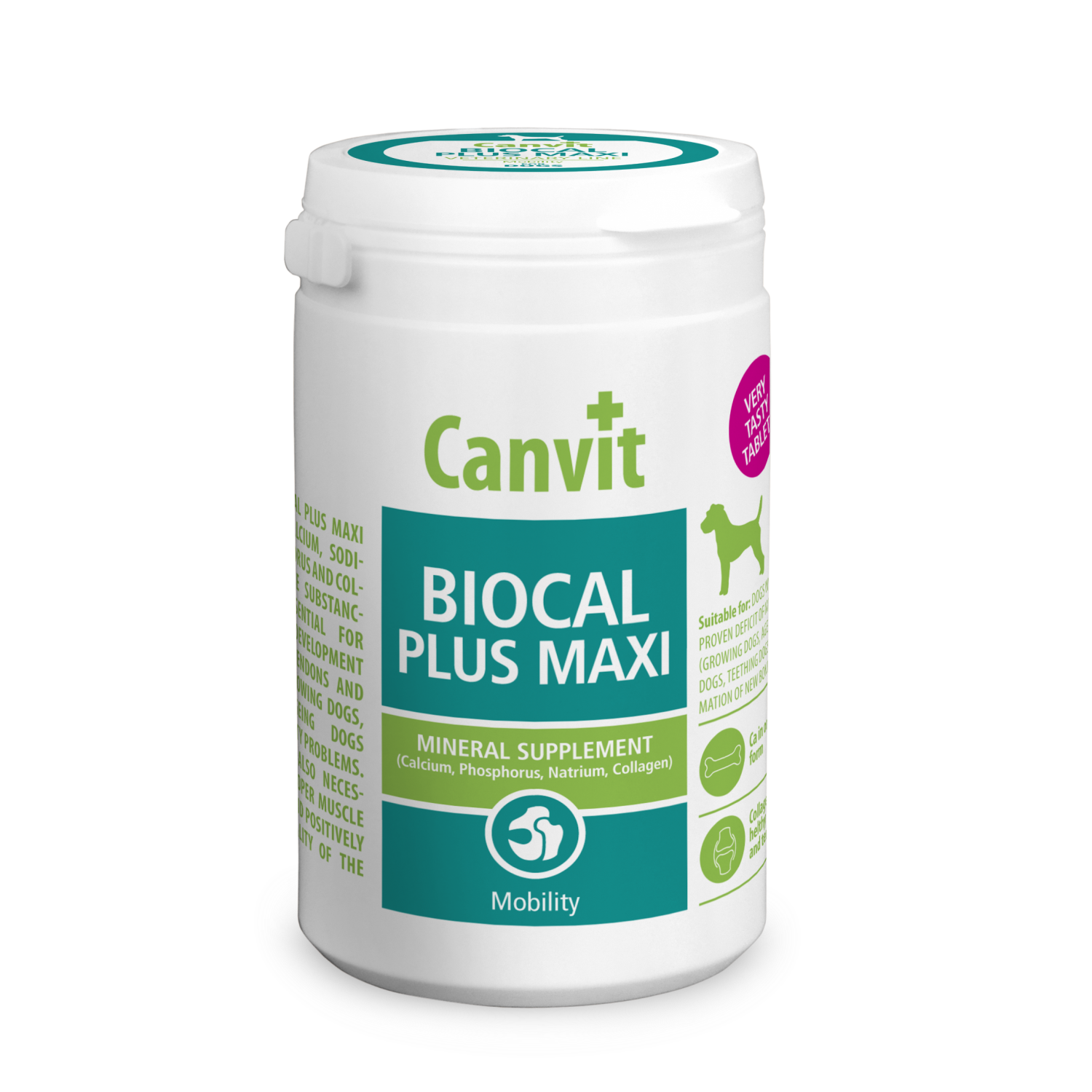 Канвіт Біокаль Плюс Максі містить кальцій, натрій, фосфор і колаген. Ці речовини необхідні для здорового розвитку кісток, сухожилок та суглобів у період росту, покращують рухливість старіючих собак. Кальцій необхідний для правильної функції м’язів, також позитивно впливає на стан здоров’я зубів.