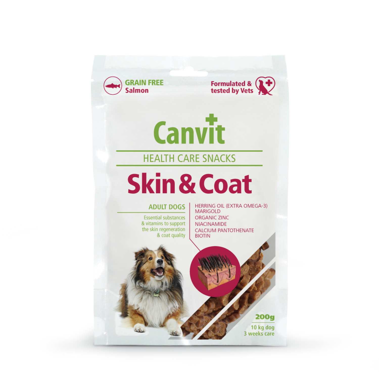 Canvit Skin and Coat напіввологі ласощі з лососем для здоров'я шкіри та шерсті собак.
