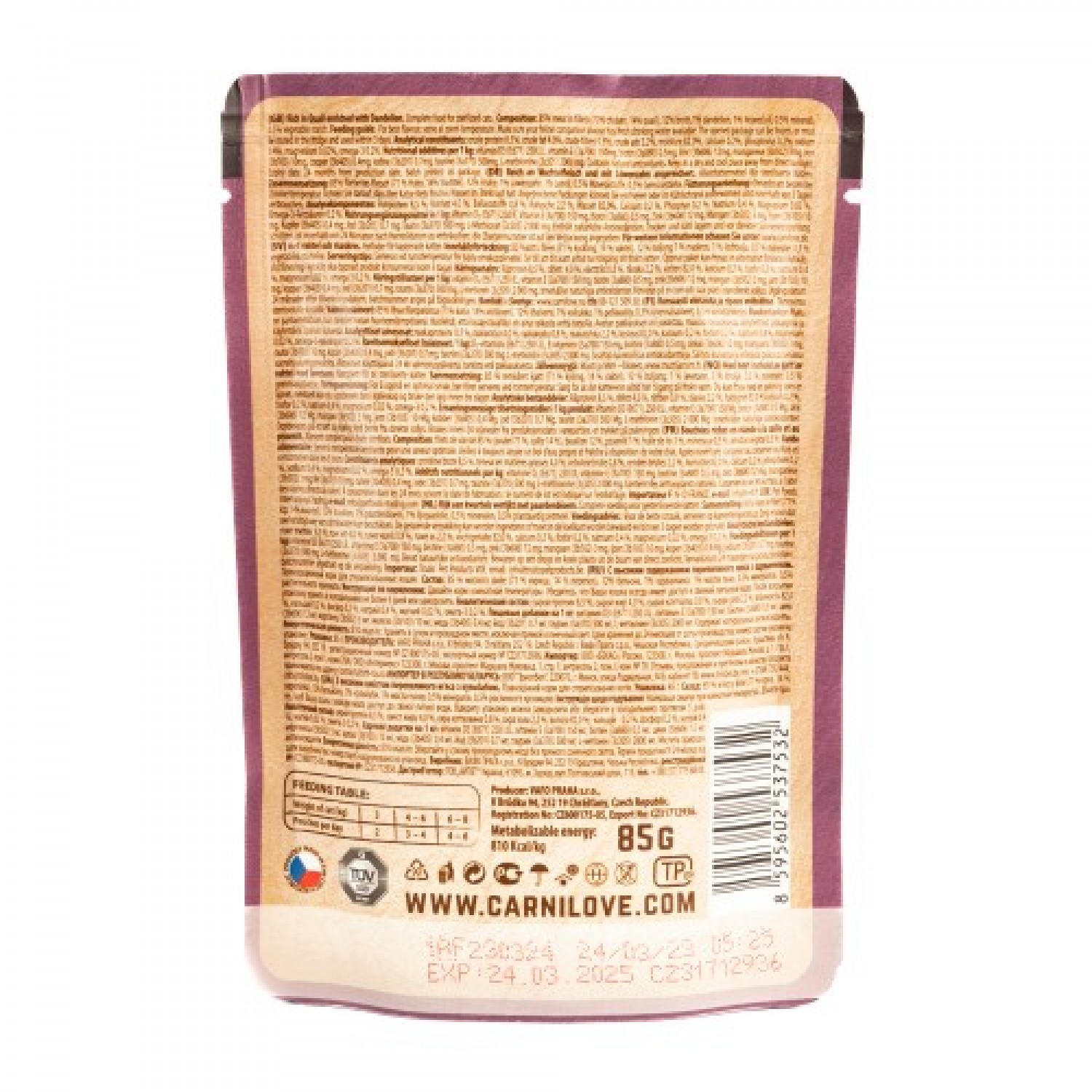 На 85% складається з високоякісного натурального м'яса, тому ви можете бути впевнені, що улюбленець отримує достатню кількість необхідного йому протеїну та поживних речовин.