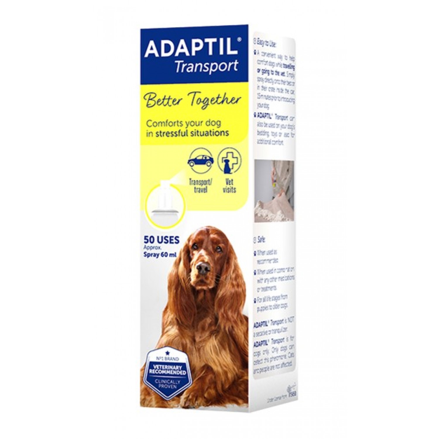 Adaptil спрей - зручний спосіб допомогти вашому собаці почуватись комфортно під час подорожі або відвідування ветеринарного лікаря. Спрей Adaptil для собак із заспокійливими феромонами містить синтетичний аналог феромону самок у період лактації.
