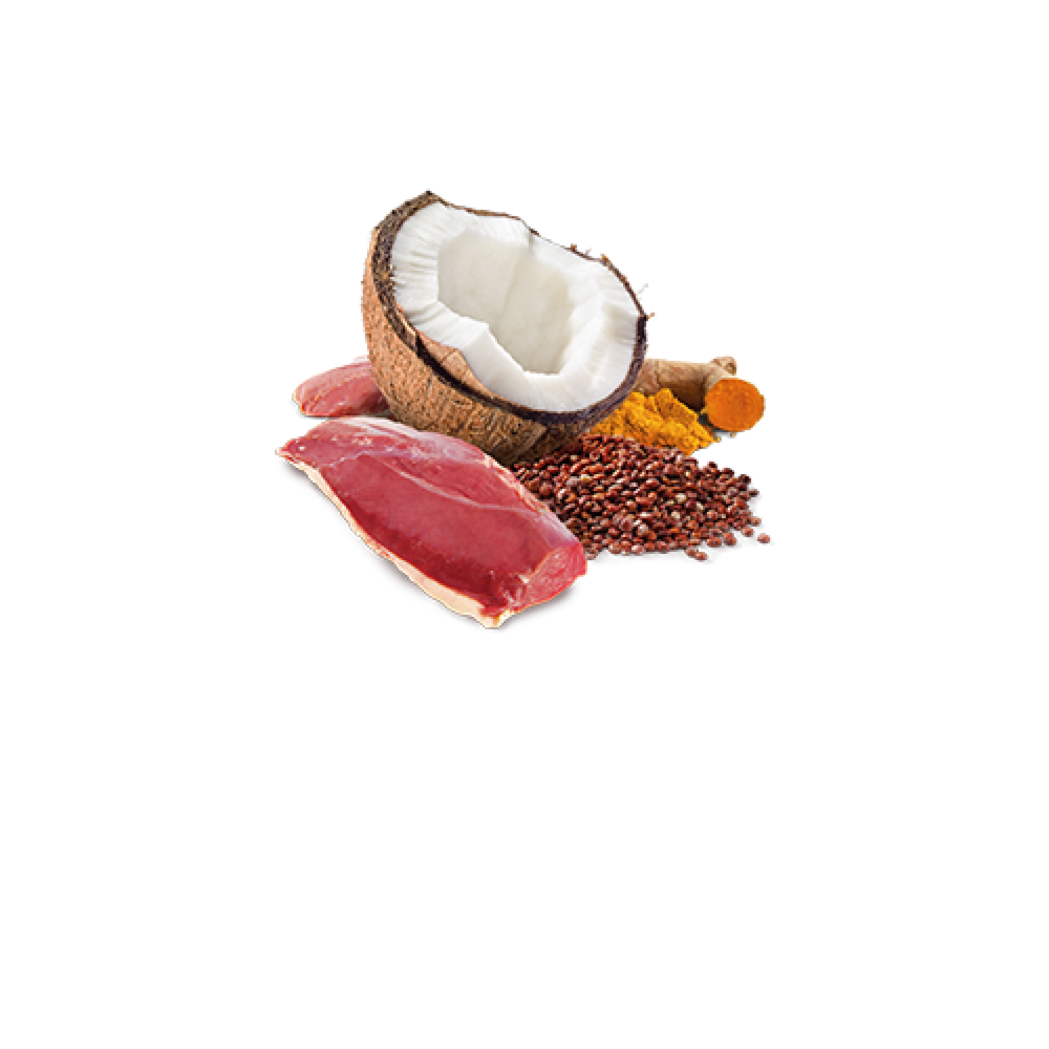 Повнораціонний вологий корм з качкою та кокосом для дорослих собак мініатюрних і малих порід, схильних до харчової алергії. Неймовірно апетитне та водночас поживне частування, що може використовуватись як самостійно, так і для доповнення основного раціону.
