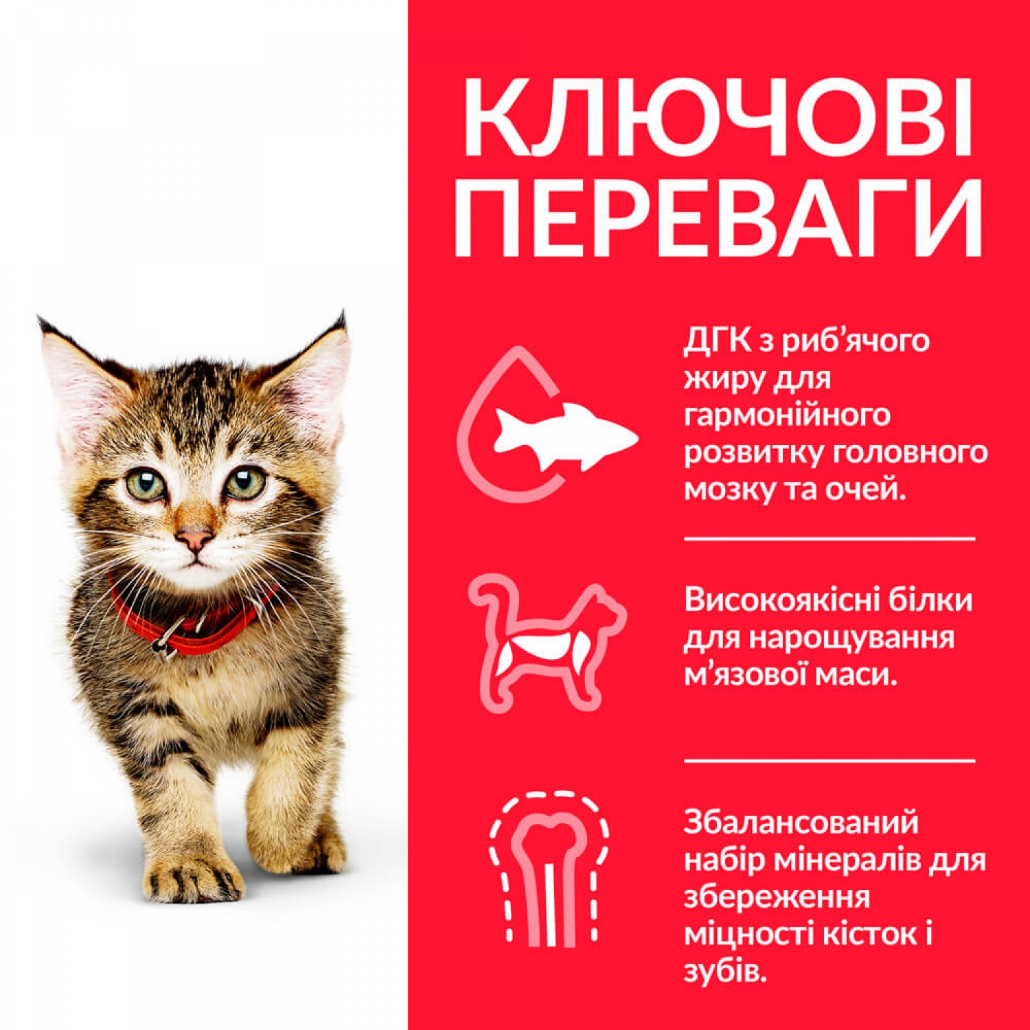 Сухий корм для кошенят Hill's Science Plan Kitten з куркою - зміцнює імунітет та забезпечує здорове зростання кошеняти. Маленьке кошеня потребує високоякісного харчування, здатного підтримувати його енергійний спосіб життя. Саме тому спеціально розроблене харчування Hill's Science Plan Kitten задовольняє всі потреби кошенят у період розвитку, завдяки чому вони виростають сильними та здоровими.