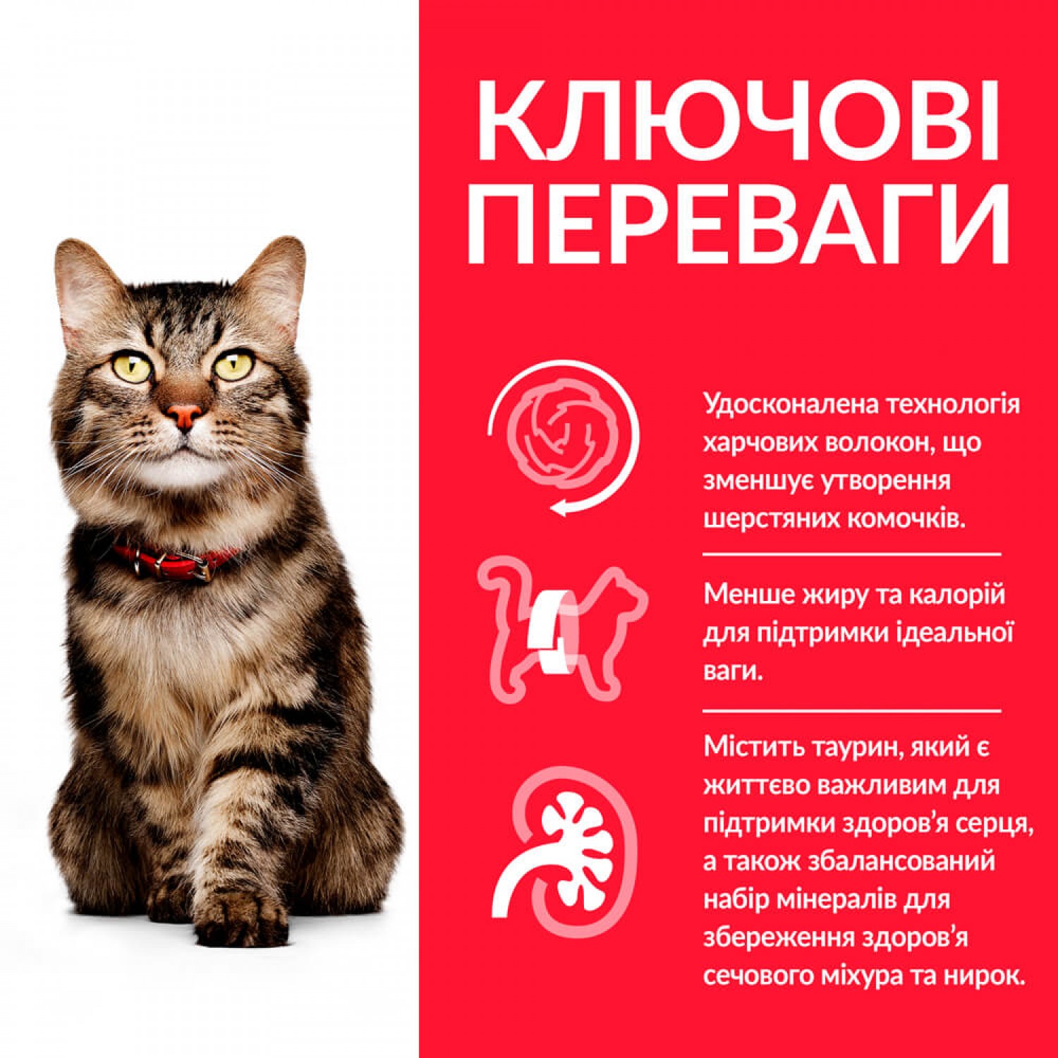 - Удосконалена технологія натуральних волокон, що зменшує утворення грудочок шерсті у шлунку кота.