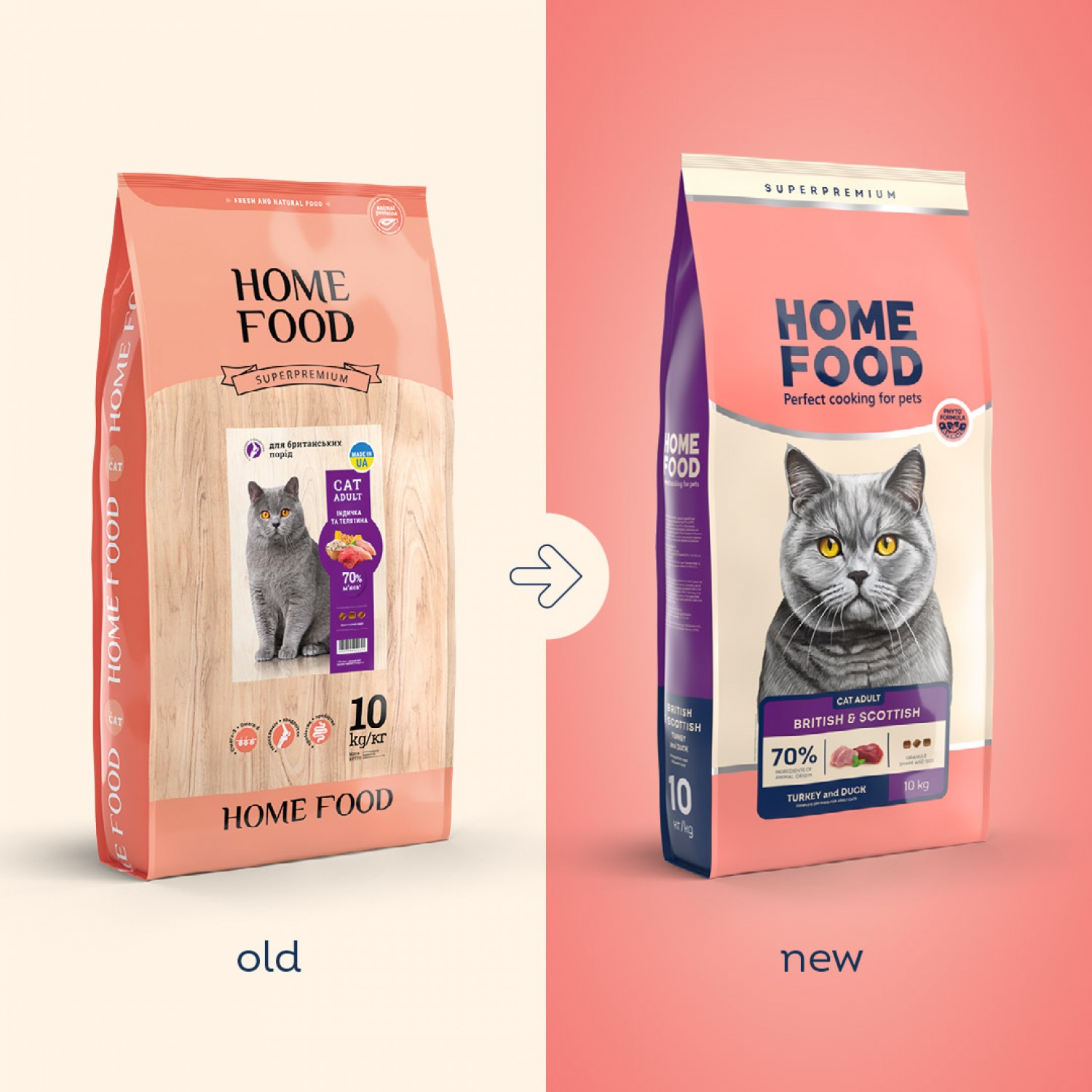 Home Food Cat Adult "Індичка та качка" - сухий корм для котів британських та шотландських порід. Форма гранули корму спеціально розроблена з урахуванням фізіологічних особливостей щелепного апарату котів британських та шотландських порід. Підходить також пухнастикам великих порід.