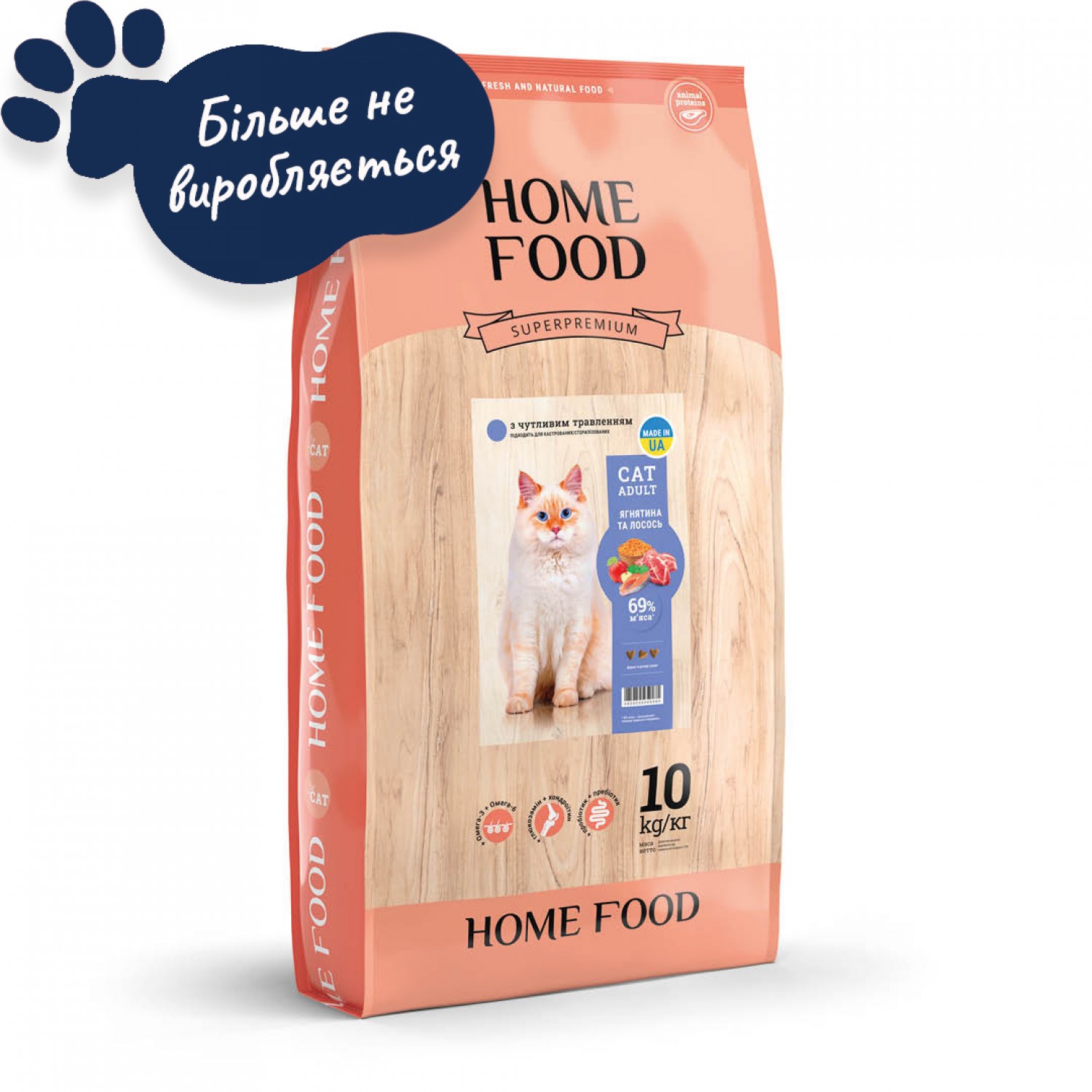 Home Food Cat Adult для стерилізованих котів з чутливим травленням "Ягнятина та лосось".