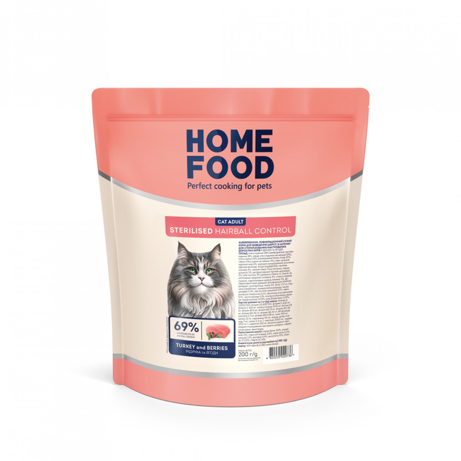 Home Food Cat Adult Hairball Control cухий корм для виведення шерсті у стерилізованих/кастрованих​ котів "Індичка та ягоди".