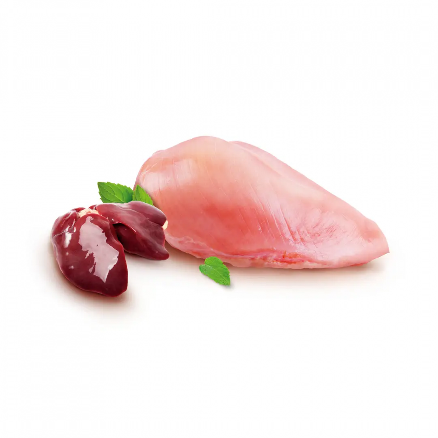 • Апетитне поєднання свіжого м'яса курки та свіжого курячого ліверу чудово смакує вибагливим котикам, забезпечує організм легкозасвоюваними протеїнами та незамінними амінокислотами.