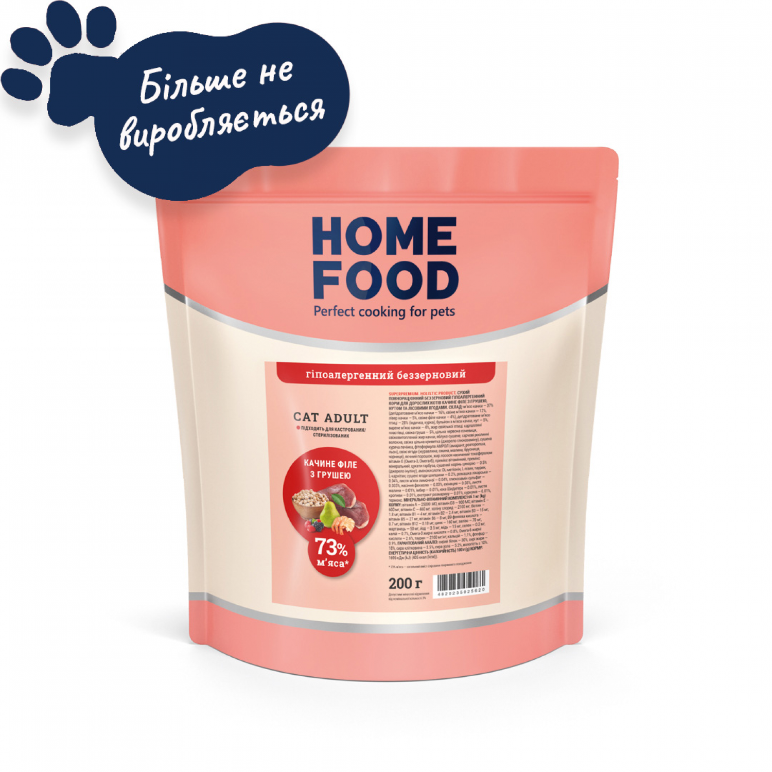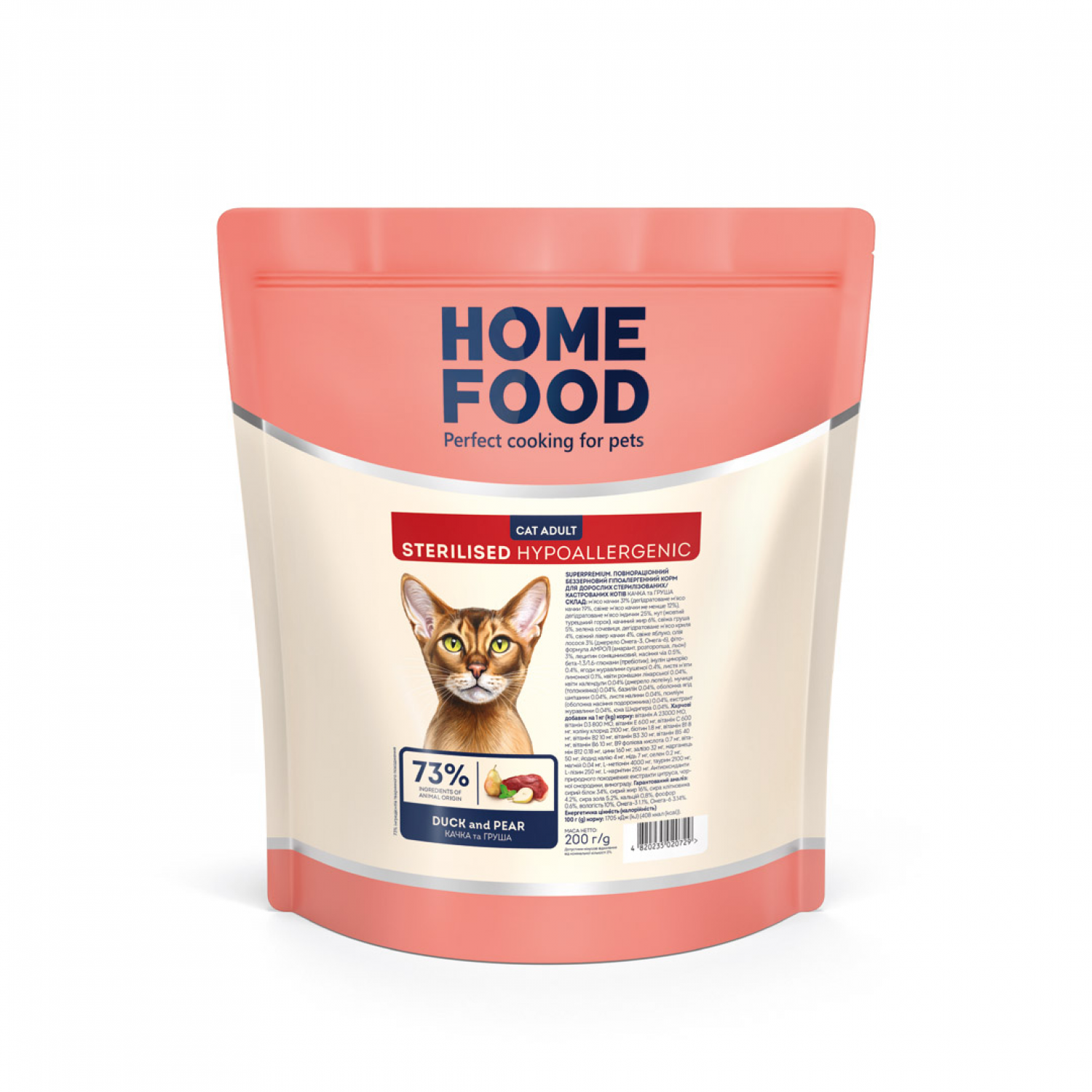 Home Food Cat Adult беззерновий гіпоалергенний корм для стерилізованих котів "Качине філе з грушею​" 0,2 кг