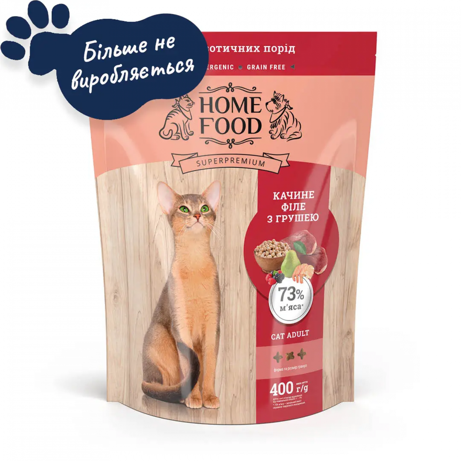 Home Food Cat Adult беззерновий гіпоалергенний корм для стерилізованих котів "Качине філе з грушею​" 0,4 кг