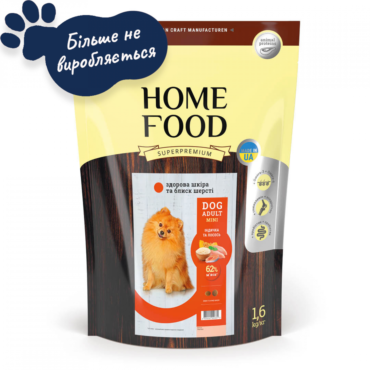 Home Food Dog Adult Mini сухий корм для шкіри та шерсті собак малих порід "Індичка та лосось".