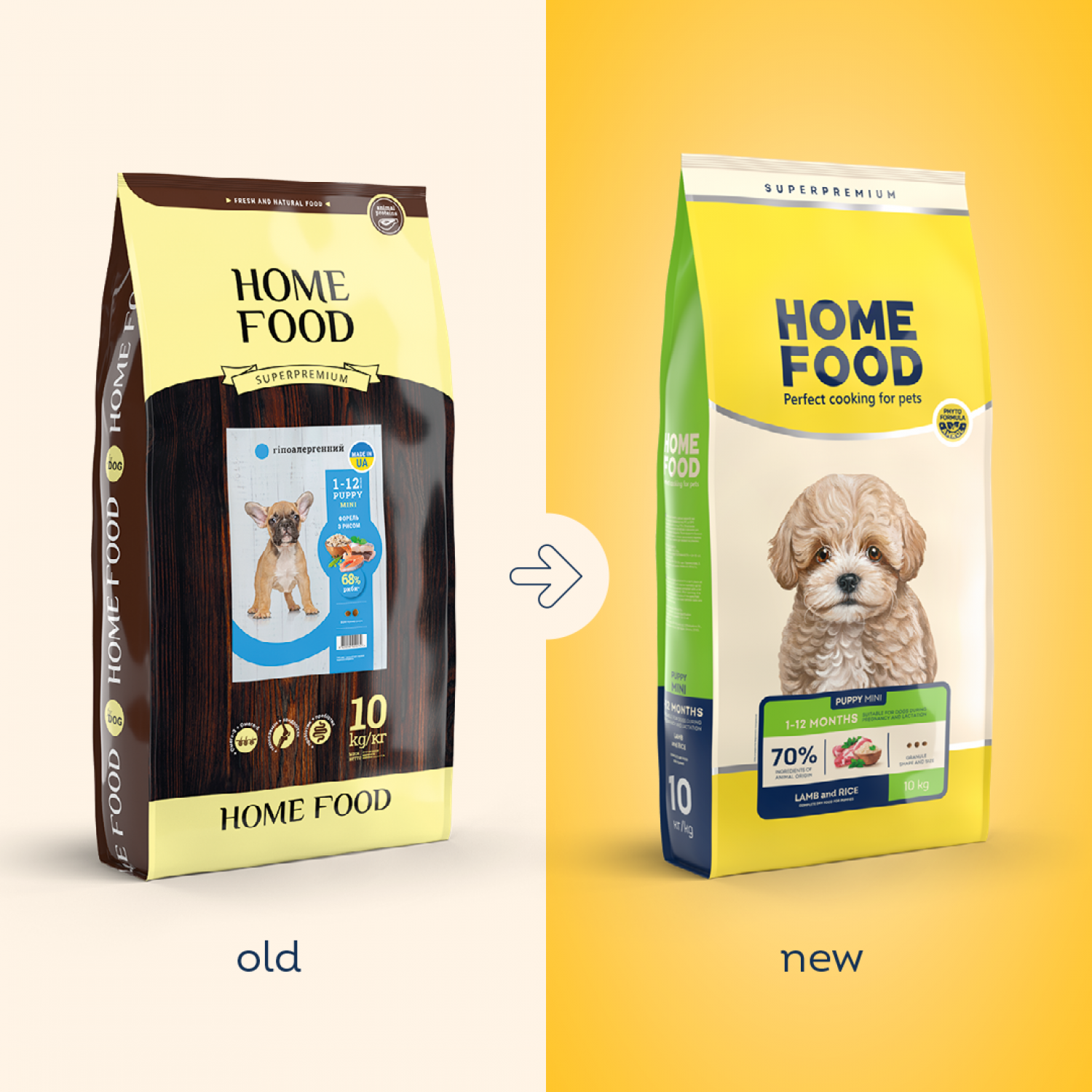 • Корм Home Food Puppy Mini створений спеціально для цуценят малих порід та вагітних сук.