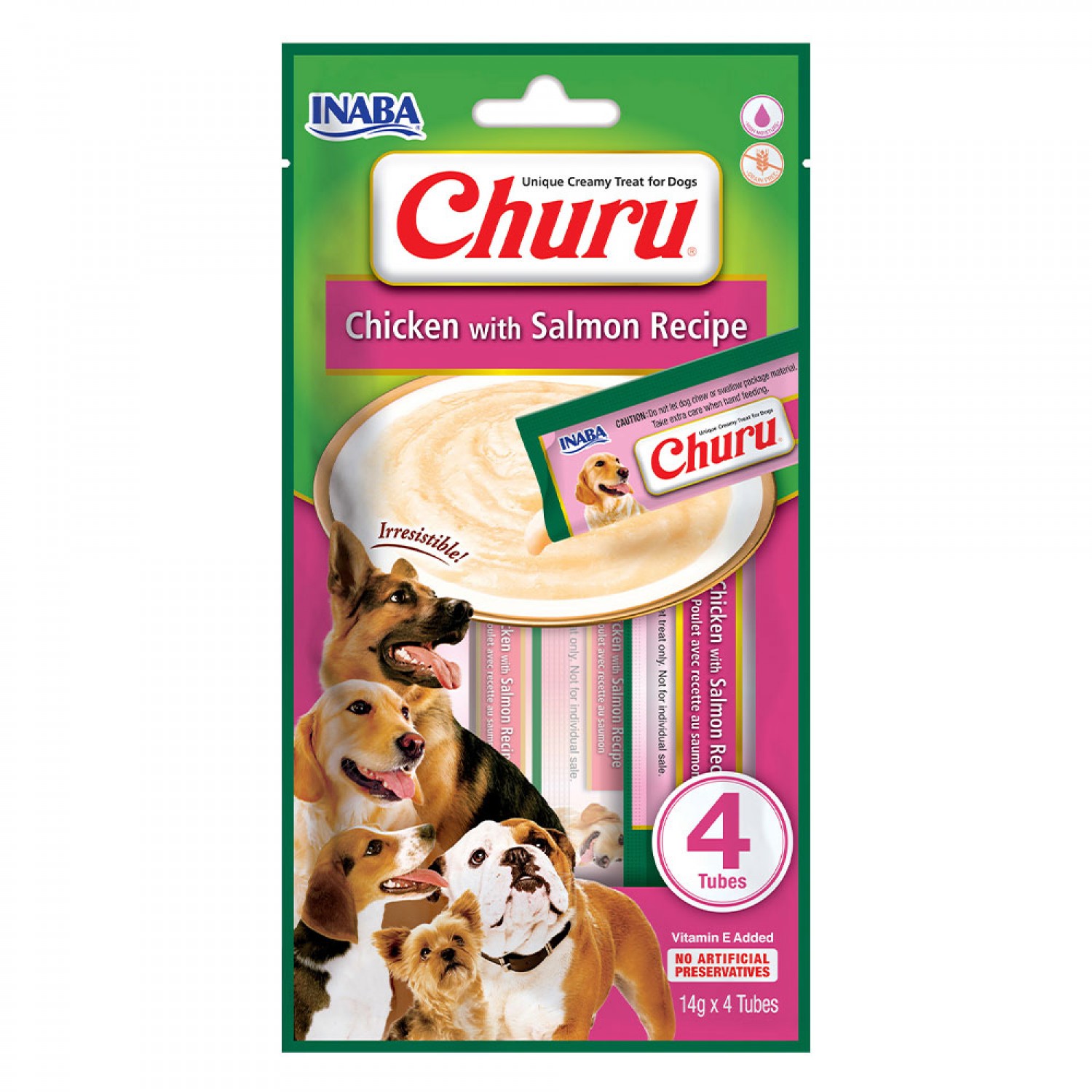 INABA Churu ласощі для собак вершковий мус з куркою та лососем 14 г (4шт/уп)