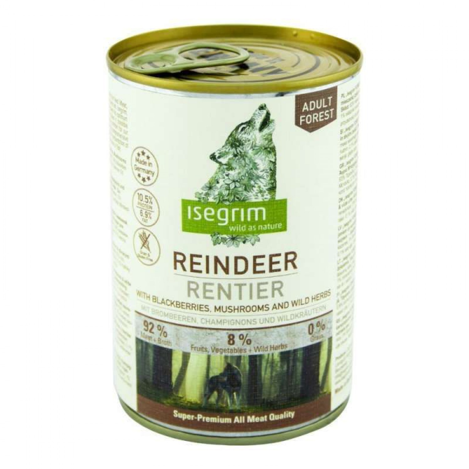 Консервований корм для дорослих собак Isegrim Adult Forest Оленина з ожиною, грибами та травами.