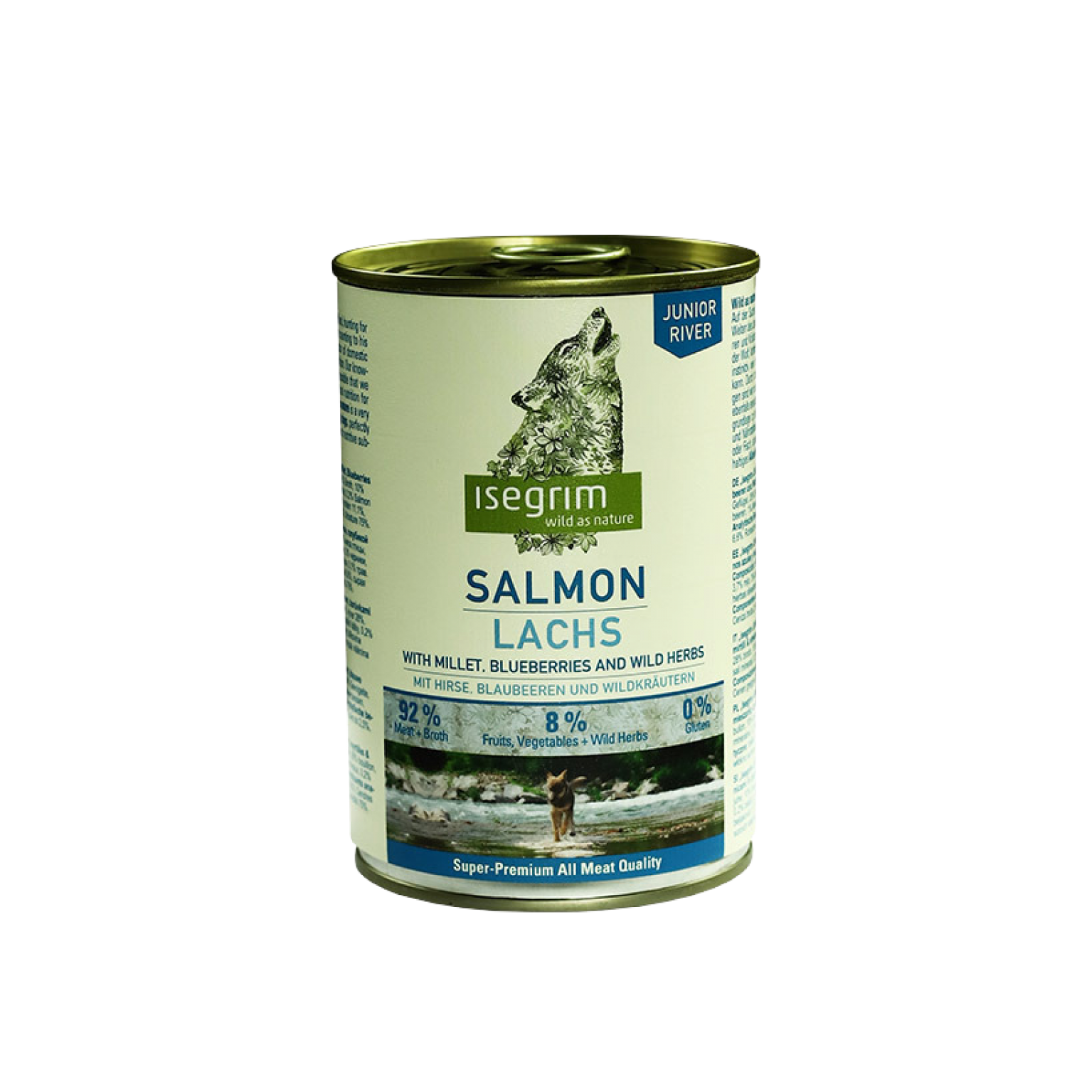 Консервований корм для дорослих собак Isegrim Adult River Лосось з пшоном, чорницею та дикими травами.