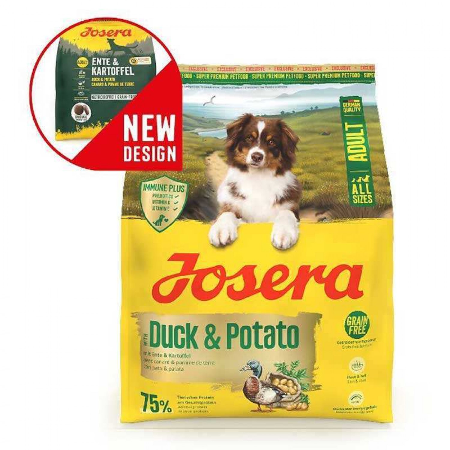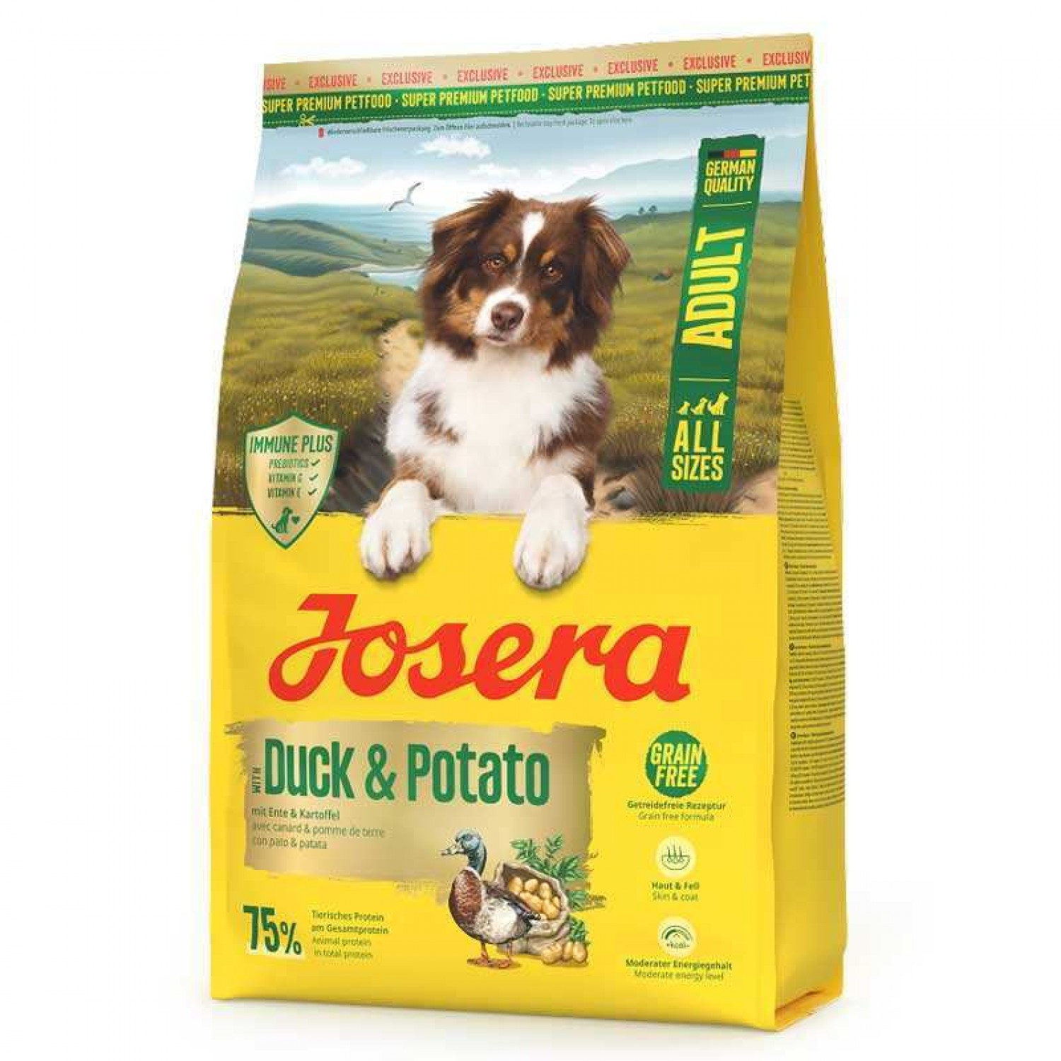 - Містить Josera IMMUNE PLUS (МОС та глюкани), які мають пребіотичну дію і підтримують природний захист організму.