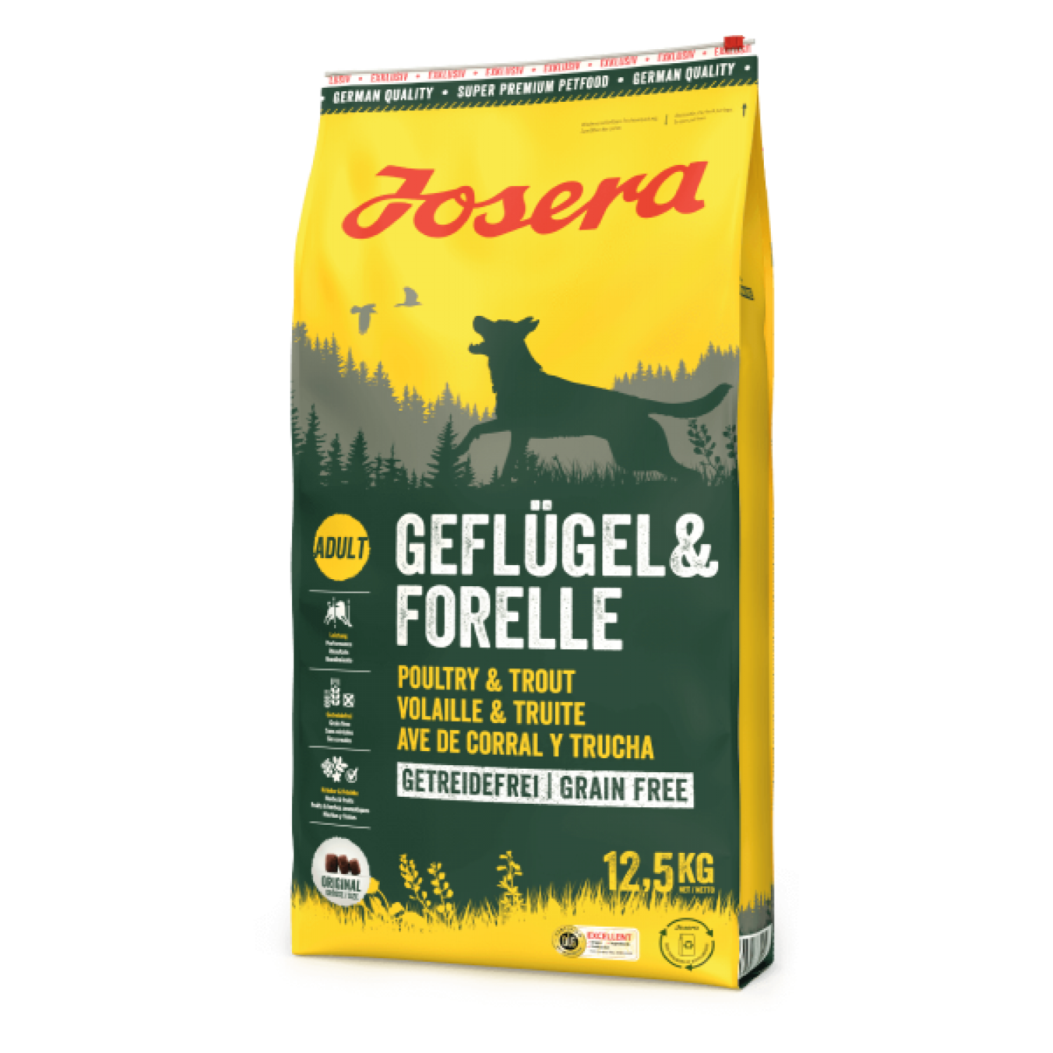 Josera Geflügel & Forelle cухий беззерновий корм з птицею і фореллю для дорослих собак.