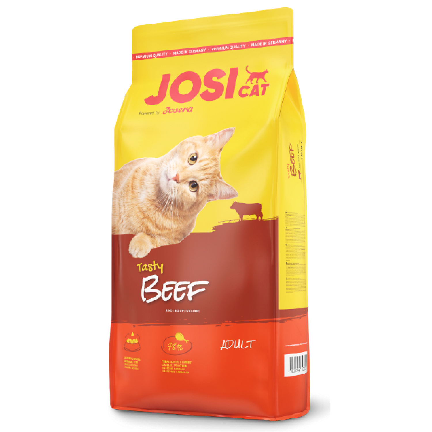 JosiCat Tasty Beef - повноцінний корм преміум классу в основі якого м'ясо яловичини. Це чудовий вибір для дорослих котів, які ведуть не дуже активний спосіб життя. Корм добре збалансований, легко засвоюється, має в складі оптимальне співвідношення жирів, білків та вуглеводів. Баланс Омега-3 та Омега-6 ненасичених жирних кислот, має позитивний вплив на здоров’я шкіри та красу шерсті, підтримує функціонування імунітету, а також підтримує загальний стан здоров’я тварини.