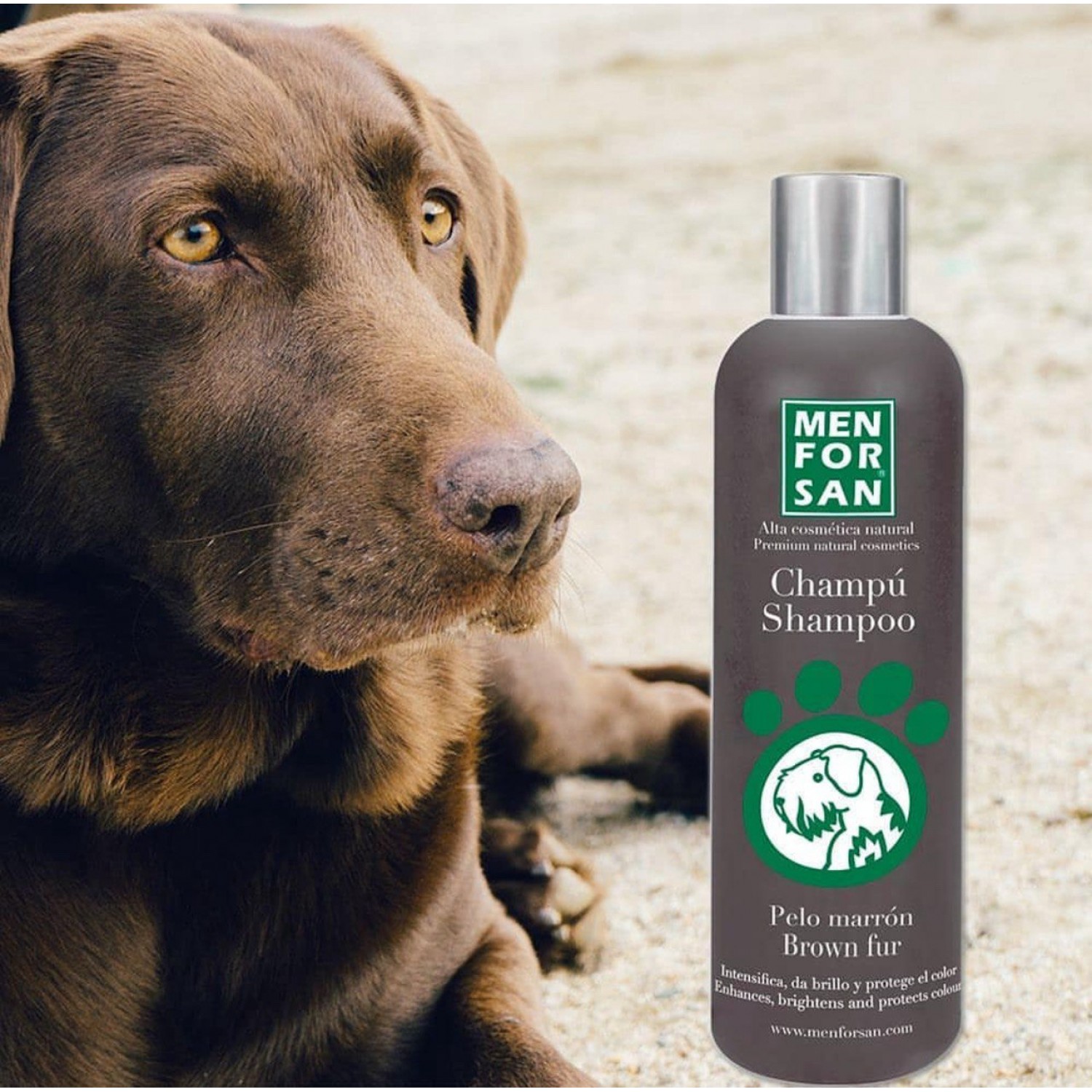 - Шампунь посилює коричневий колір і посилює природний колір та блиск хутра.