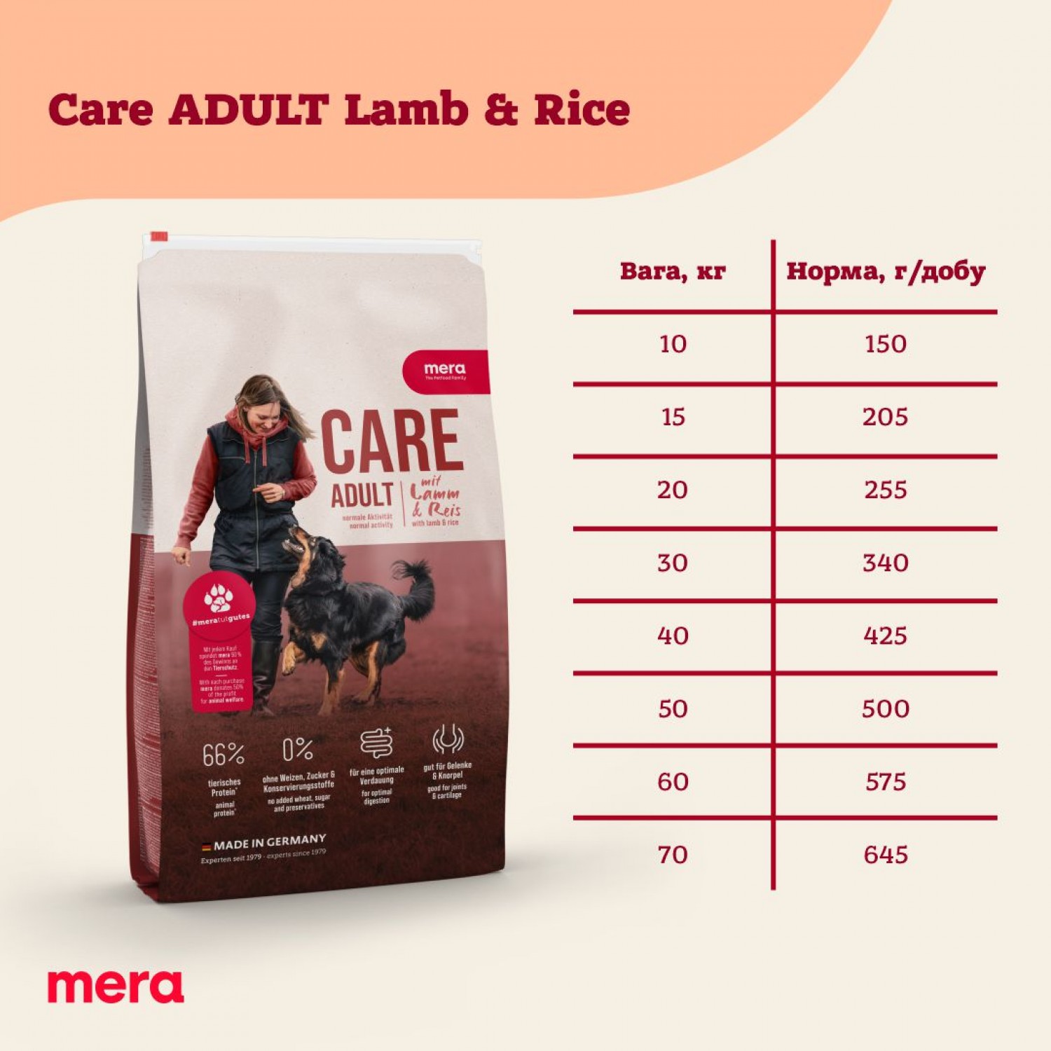 MERA Care Adult Lamb & Rice сухий корм для собак з ягням та рисом.