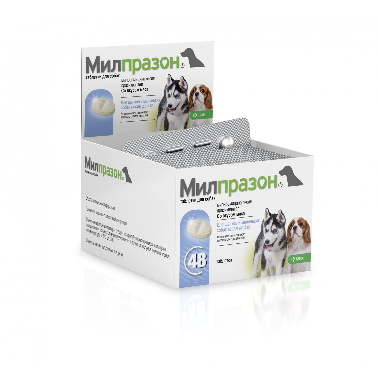 - Препарат застосовують собакам одноразово під час годівлі з невеликою кількістю корму або вводять примусово на корінь язика після годівлі у мінімальній терапевтичній дозі: 0,5 мг мілбеміцину оксиму та 5 мг празіквантелу на кг маси тіла.