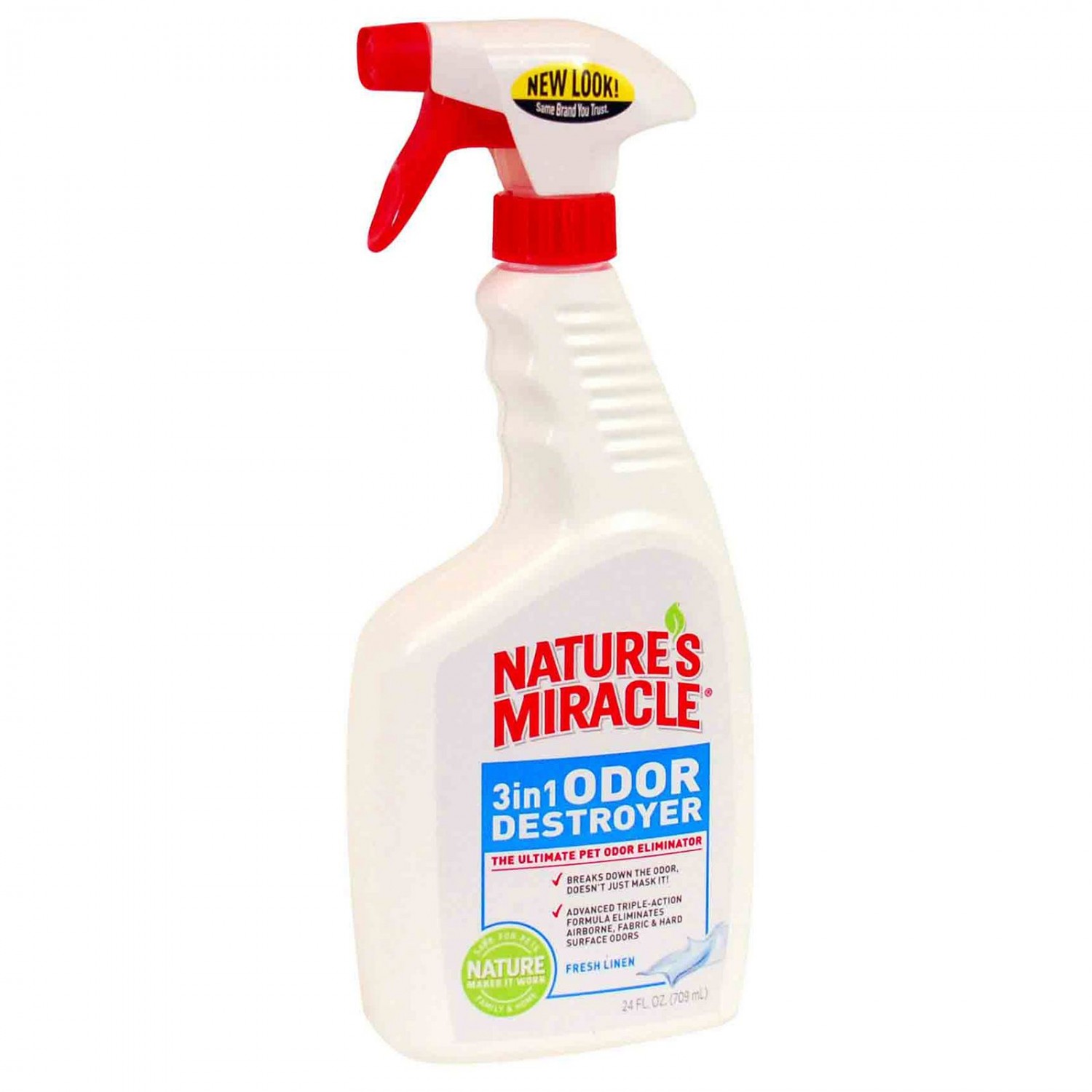 Nature's Miracle "3in1 Odor Destroyer" спрей-знищувач для усунення будь-яких запахів від тварин з ароматом свіжої білизни.