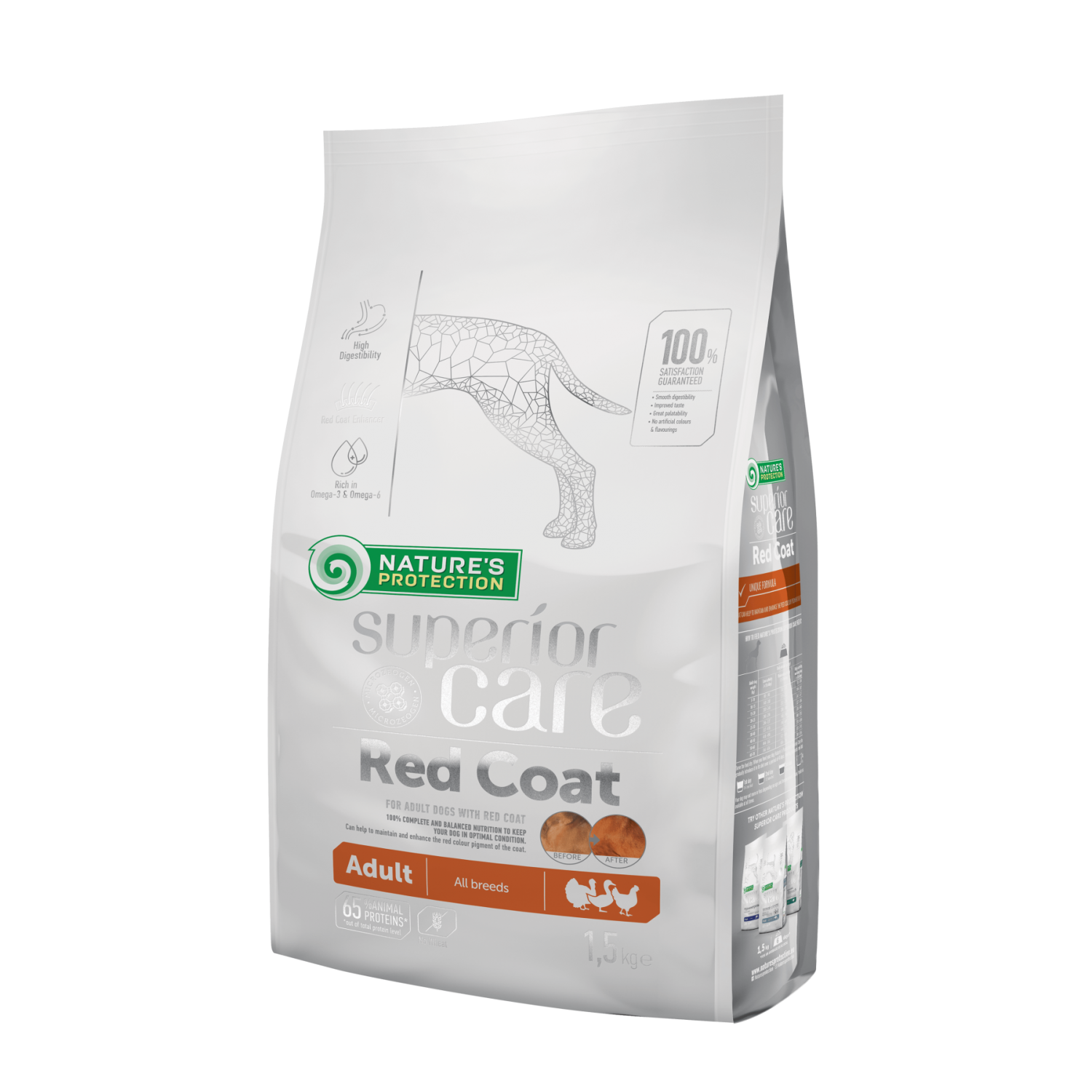 Nature's Protection Superior Care Red Coat - це повноцінний збалансований корм для дорослих собак усіх порід з рудою шерстю.