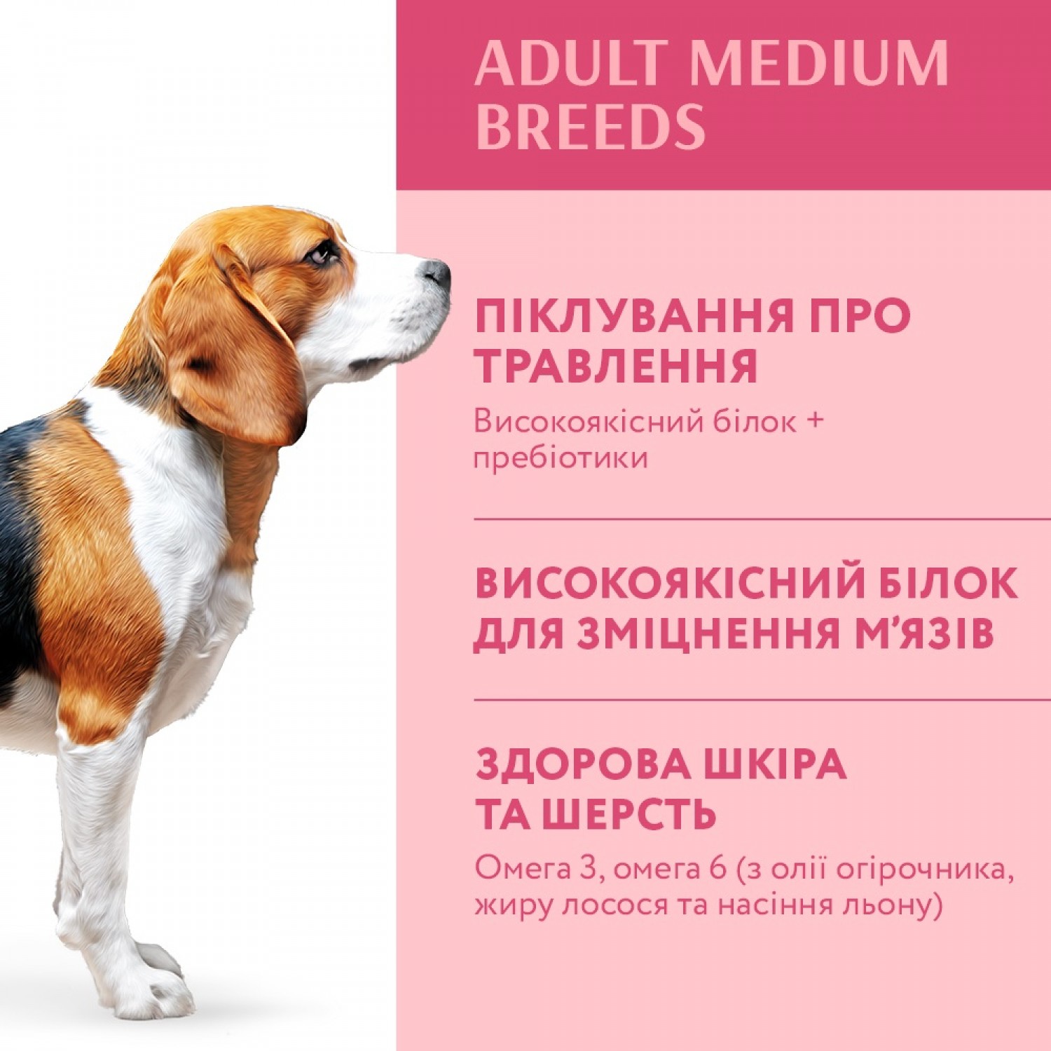 Корм ідеально підходить для собак середніх порід.