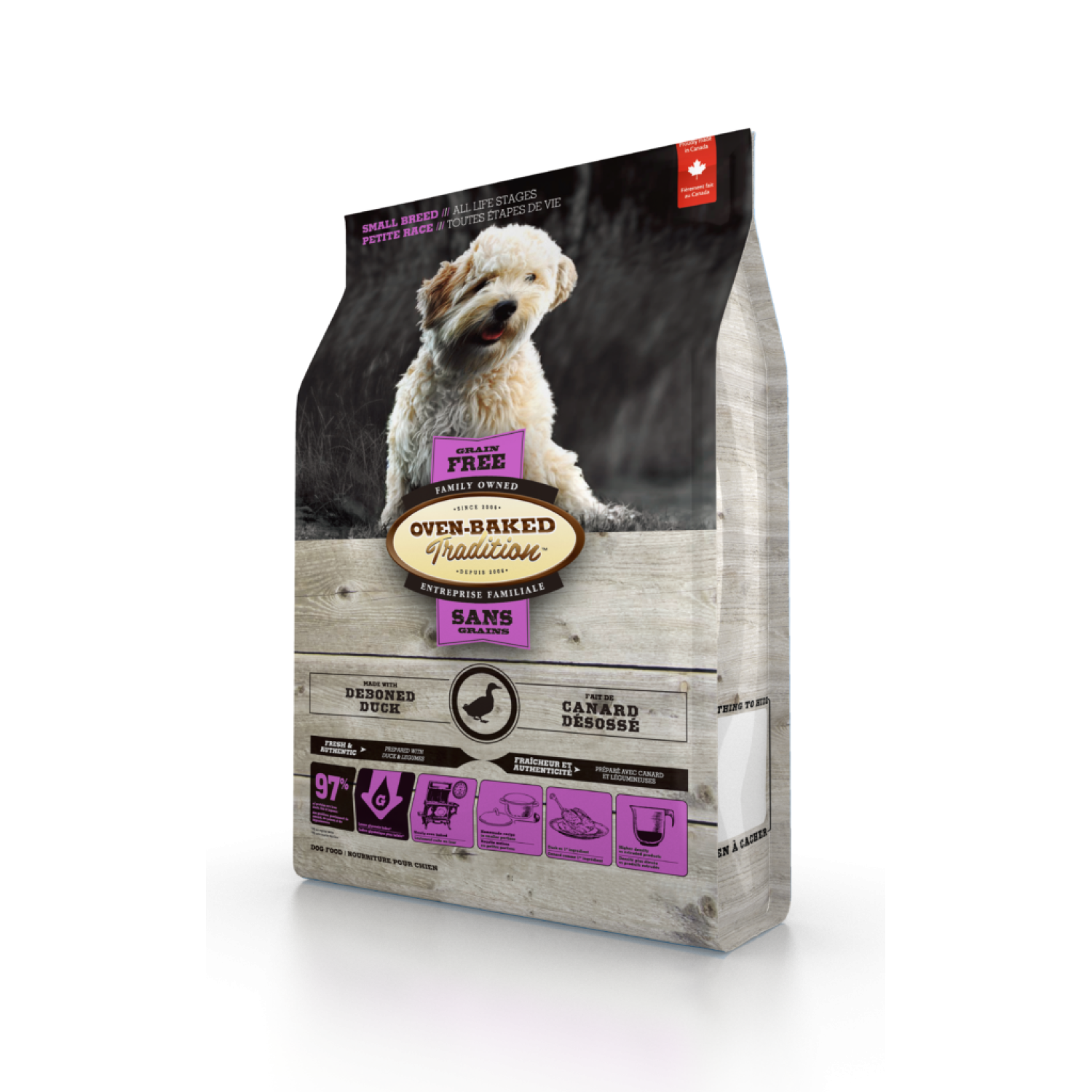 Oven-Baked Tradition повністю збалансований беззерновий сухий корм для собак малих порід зі свіжого м’яса качки.